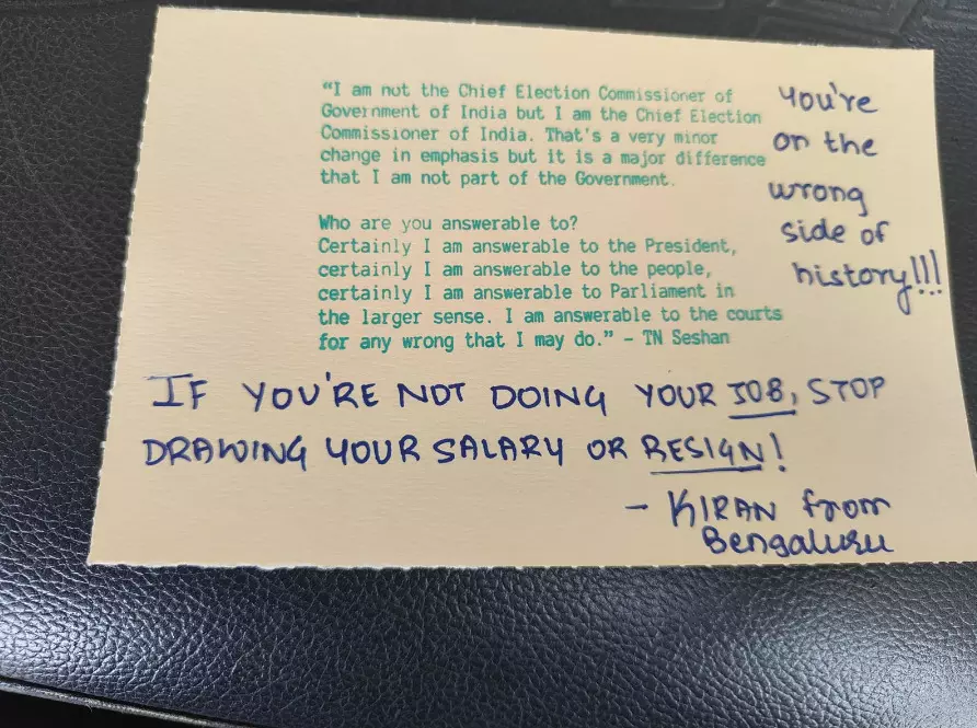ಚುನಾವಣಾ ಆಯೋಗದ ನಿಷ್ಕ್ರಿಯತೆ ವಿರುದ್ಧ ಅಂಚೆ ಪತ್ರ ಅಭಿಯಾನ