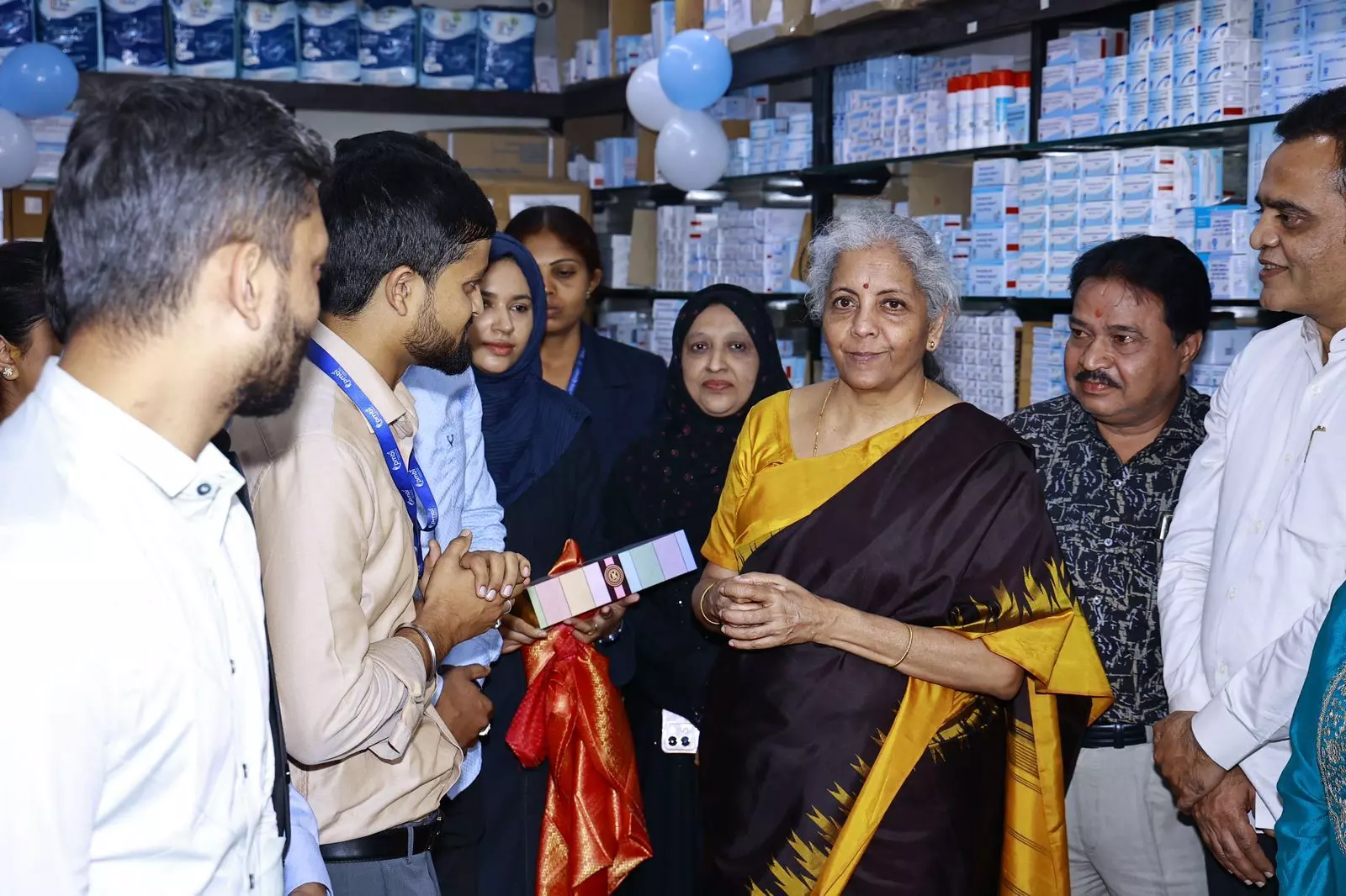 ಜನೌಷಧಿ ಕೇಂದ್ರದಲ್ಲಿ ಸಾರ್ವಜನಿಕರೊಂದಿಗೆ ಕೇಂದ್ರ ಸಚಿವೆ ನಿರ್ಮಲಾ ಸೀತಾರಾಮನ್ ಸಂವಾದ