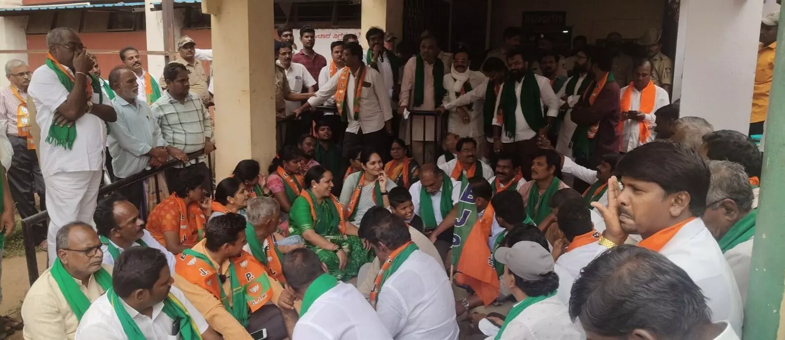 ಕೇಂದ್ರ ಸರ್ಕಾರ ಒದಗಿಸಿರುವ ರಸಗೊಬ್ಬರವನ್ನು ರಾಜ್ಯ ಸರ್ಕಾರ ರೈತರಿಗೆ ಸರಿಯಾಗಿ ಹಂಚಿಕೆ ಮಾಡುತ್ತಿಲ್ಲವೆಂದು ರಾಯಲ್ ವೃತ್ತದಲ್ಲಿ ಸಮಾವೇಶಗೊಂಡ ಕಾರ್ಯಕರ್ತರು, ರಾಜ್ಯ ಸರ್ಕಾರದ ವಿರುದ್ಧ ಘೋಷಣೆ ಕೂಗಿ ಆಕ್ರೋಶ ವ್ಯಕ್ತಪಡಿಸಿದರು.