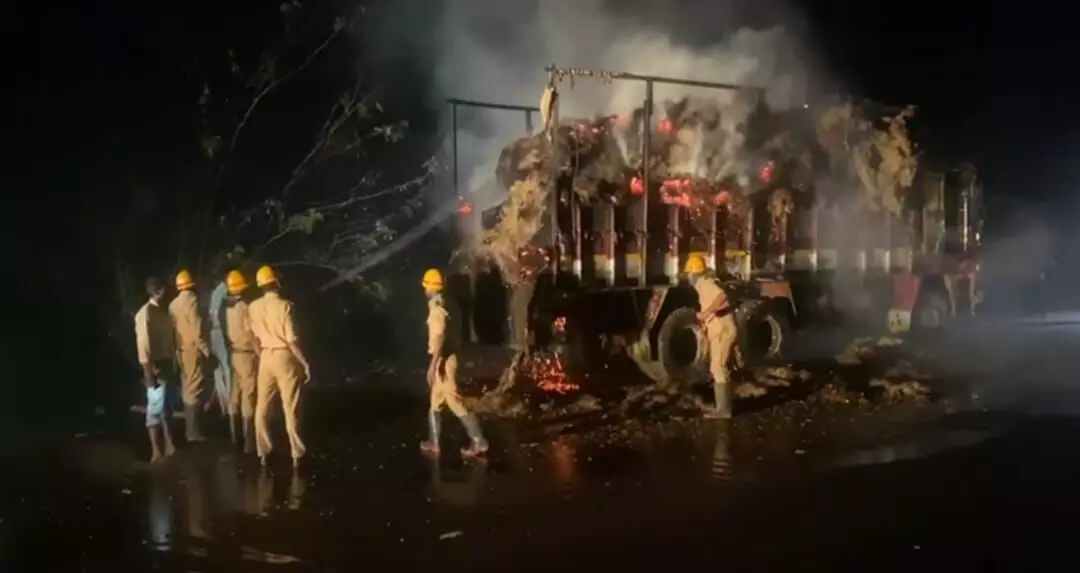 ಬೀದರ್ | ಆಕಸ್ಮಿಕ ಬೆಂಕಿ; ಹೊತ್ತಿ ಉರಿದ ಲಾರಿ