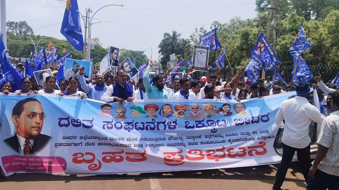 ಇಂದು ನಗರದ ಪ್ರವಾಸಿ ಮಂದಿರದಿಂದ ಹೊರಟ ಪ್ರತಿಭಟನಾ ರ್ಯಾಲಿಯು ಅಂಬೇಡ್ಕರ್ ವೃತ್ತದ ಬಳಿ ಮಾನವ ಸರಪಳಿ ನಿರ್ಮಿಸಿ ಸಚಿವರ ವಿರುದ್ಧ ಘೋಷಣೆ ಕೂಗಲಾಯಿತು. ನಂತರ ಭಗತ್ ಸಿಂಗ್ ವೃತ್ತದ ಮೂಲಕ ಸಾಗಿ ಜಿಲ್ಲಾಧಿಕಾರಿ ಕಚೇರಿ ಎದುರುಗಡೆ ಸಚಿವ ಈಶ್ವರ್ ಖಂಡ್ರೆ ಅವರ ಪ್ರತಿಕೃತಿ ದಹಿಸಿ ಆಕ್ರೋಶ ಹೊರ ಹಾಕಲಾಯಿತು.