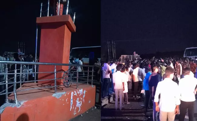 ಇಂದು ಸುಮಾರು 4 ಗಂಟೆಗೆ ಲಾರಿಯೊಂದು ಬಸವಣ್ಣನವರ ಮೂರ್ತಿಗೆ ಢಿಕ್ಕಿ ಹೊಡೆದು ಮೂರ್ತಿಯನ್ನು ವಿರೂಪಗೊಳಿಸಿದ್ದು, ಘಟನೆ ವಿರುದ್ಧ ಗ್ರಾಮಸ್ಥರು ರಸ್ತೆ ತಡೆ ನಡೆಸಿ ಪ್ರತಿಭಟನೆ ನಡೆಸಿದ್ದಾರೆ.