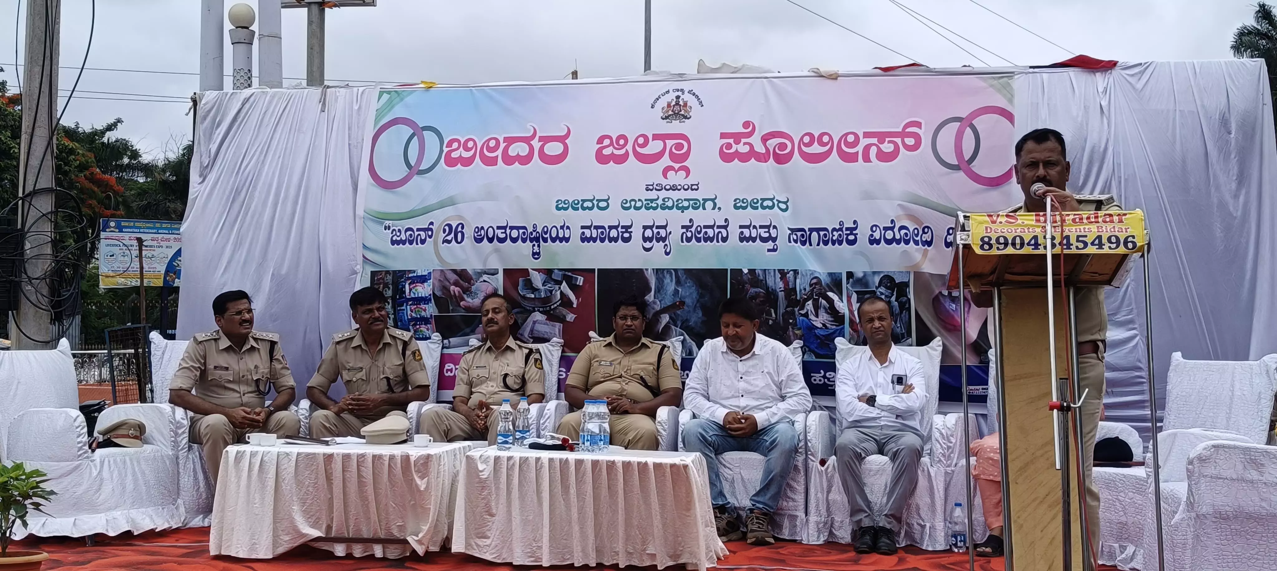 ಬೀದರ್ : ಪ್ರತಿಯೊಬ್ಬರು ಸಾಮಾಜಿಕ ಜವಾಬ್ದಾರಿ ತೆಗೆದುಕೊಂಡಾಗ ಮಾತ್ರ ಸಮಾಜವನ್ನು ನಶೆ ಮುಕ್ತ ಮಾಡಲು ಸಾದ್ಯವಾಗುತ್ತದೆ. ಸಾರ್ವಜನಿಕರು ಪೊಲೀಸ್ ಇಲಾಖೆಗೆ ಸಹಕರಿಸಬೇಕು ಎಂದು ಜಿಲ್ಲಾ ಪೊಲೀಸ್ ವರೀಷ್ಠಾಧಿಕಾರಿ ಪ್ರದೀಪ್ ಗುಂಟಿ ಅವರು ತಿಳಿಸಿದರು.