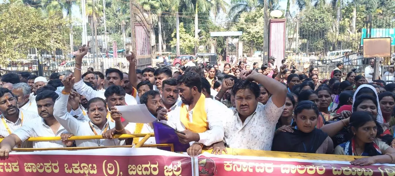 ಇಂದು ನಗರದ ಅಂಬೇಡ್ಕರ್ ವೃತ್ತದಿಂದ ಜಿಲ್ಲಾಧಿಕಾರಿ ಕಚೇರಿ ವರೆಗೆ ಪ್ರತಿಭಟನಾ ಮೆರವಣಿಗೆ ಮೂಲಕ ಆಗಮಿಸಿದ ಪ್ರತಿಭಟನಾಕಾರರು, ಜಿಲ್ಲಾಧಿಕಾರಿಗಳ ಮೂಲಕ ಗ್ರಾಮೀಣಾಭಿವೃದ್ಧಿ ಮತ್ತು ಪಂಚಾಯತ್ ರಾಜ್ ಹಾಗೂ ಐ.ಟಿ ಮತ್ತು ಬಿ. ಟ ಸಚಿವ ಪ್ರಿಯಾಂಕ್ ಖರ್ಗೆ ಅವರಿಗೆ ಮನವಿ ಪತ್ರ ಸಲ್ಲಿಸಿದರು.