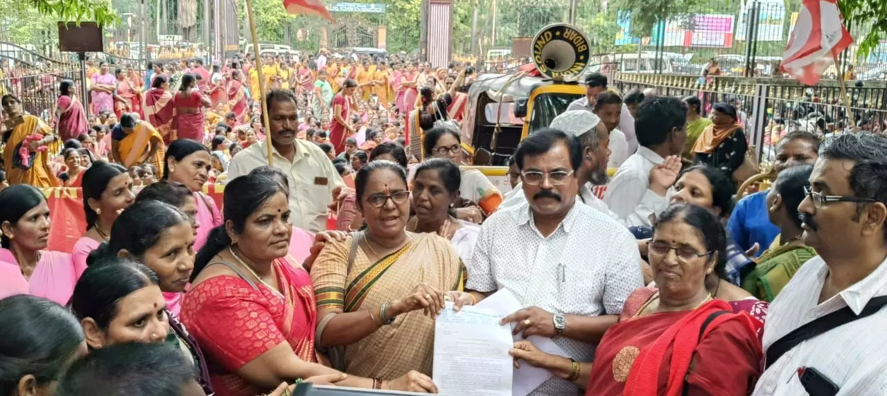 ಅಂಗನವಾಡಿ ನೌಕರರು, ಆಶಾ ಕಾರ್ಯಕರ್ತೆ ಹಾಗೂ ಬಿಸಿಯೂಟ ನೌಕರರನ್ನು ಸರ್ಕಾರಿ ನೌಕರರು ಎಂದು ಪರಿಗಣಿಸಿ ಅವರಿಗೆ ಮಾಸಿಕ 25 ಸಾವಿರ ರೂ. ಸಂಬಳ ನೀಡಬೇಕು. ಕೇಂದ್ರ ಸರ್ಕಾರವು ಕಾರ್ಮಿಕ ಚಳುವಳಿ ತಡೆಗಟ್ಟಲು ಕಠಿಣ ಕಾನೂನು ಜಾರಿಗೆ ತಂದಿದ್ದು, ಅವುಗಳನ್ನು ನಿಷೇಧ ಮಾಡಿ, ಕಾರ್ಮಿಕರಿಗೆ ಸಾಮಾಜಿಕ ಭದ್ರತೆ ಒದಗಿಸಬೇಕು ಎಂದು ಆಗ್ರಹಿಸಲಾಗಿದೆ.
