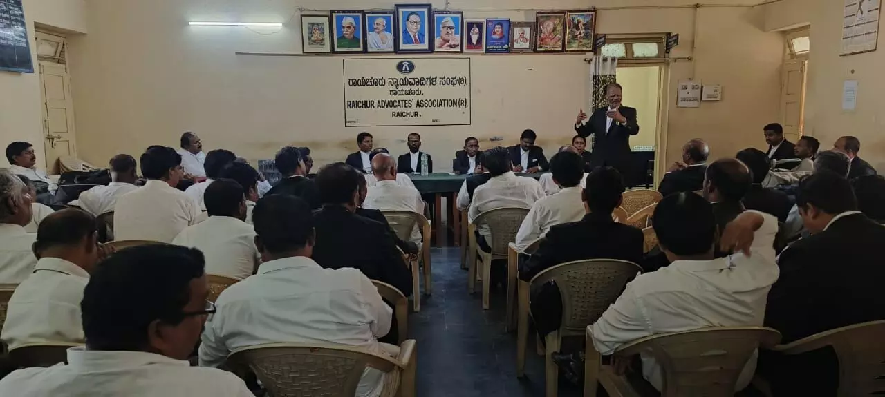 ಸಭೆಯಲ್ಲಿ ಹಿರಿಯ ವಕೀಲರಾದ ರಾಜಾ ಪಾಂಡುರಂಗ ನಾಯಕ, ಕೆ.ನೀಲಕಂಠ ರಾವ್, ಮುಹಮ್ಮದ್ ಸುಲ್ತಾನ್, ಶಿವಕುಮಾರ ಮ್ಯಾಗಳಮನಿ ಸೇರಿ ಇತರರು ಮಾತನಾಡಿದರು.