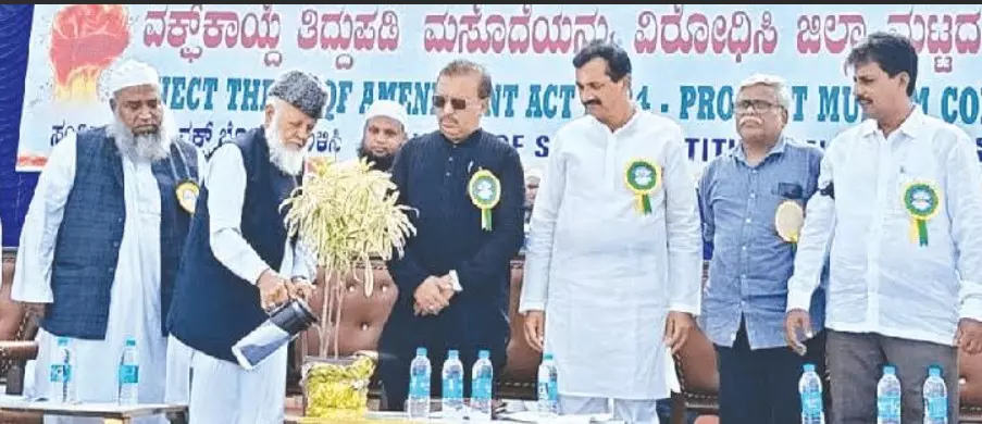 ವಕ್ಪ್ ಮಸೂದೆ ವಿರೋಧಿಸುವ ಬೃಹತ್ ಸಮಾವೇಶದ ಅಧ್ಯಕ್ಷತೆ ಖಾಝಿ ಕಾಮಿಲ್ ನಯೀಮುಲ್ ಹಕ್ ವಹಿಸಿದರು.
