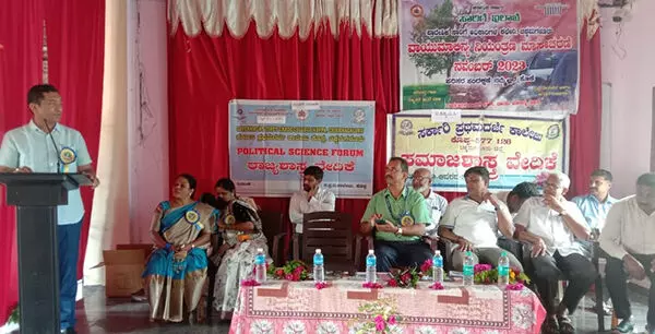 ಕೊಪ್ಪದ ಸರ್ಕಾರಿ ಪ್ರಥಮ ದರ್ಜೆ ಕಾಲೇಜಿನ ಐ.ಕ್ಯೂ.ಎ.ಸಿ ರಾಜ್ಯಶಾಸ್ತ್ರ ಮತ್ತು ಸಮಾಜಶಾಸ್ತ್ರ ವೇದಿಕೆ ಹಾಗೂ ಸಾರಿಗೆ ಇಲಾಖೆ ಚಿಕ್ಕಮಗಳೂರು ಇದರ ಸಂಯುಕ್ತ ಆಶ್ರಯದಲ್ಲಿ ಇಂದು ನಡೆದ ಸಂವಿದಾನ ದಿನಾಚರಣೆ, ವಾಯು ಮಾಲಿನ್ಯ ಸಪ್ತಾಹ ಹಾಗು ರಸ್ತೆ ಸುರಕ್ಷತೆ ಕಾರ್ಯಕ್ರಮ ಉದ್ಘಾಟಿಸಿ ಮಾತನಾಡುತ್ತಿದ್ದರು.