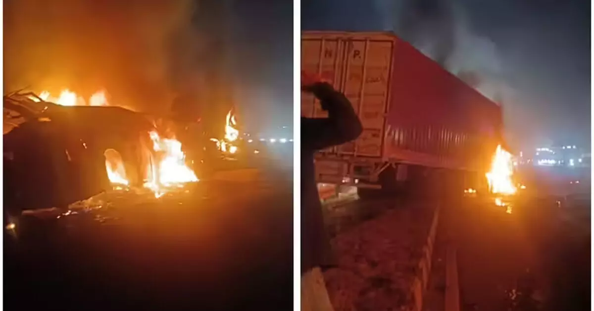 ಲಾರಿಯೊಂದು ಡಿವೈಡರ್ ದಾಟಿ ಎದುರುಗಡೆಯಿಂದ ಬರುತ್ತಿದ್ದ ಖಾಸಗಿ ಸ್ಲೀಪರ್ ಕೋಚ್ ಬಸ್ಗೆ ಡಿಕ್ಕಿ ಹೊಡೆದ ಪರಿಣಾಮ ಬಸ್ ಹೊತ್ತಿ ಉರಿದಿದೆ. ಹಲವರು ಗಂಭೀರವಾಗಿ ಗಾಯಗೊಂಡಿದ್ದು, ಸಾವಿನ ಸಂಖ್ಯೆ ಹೆಚ್ಚಾಗುವ ಸಾಧ್ಯತೆ ಇದೆ.