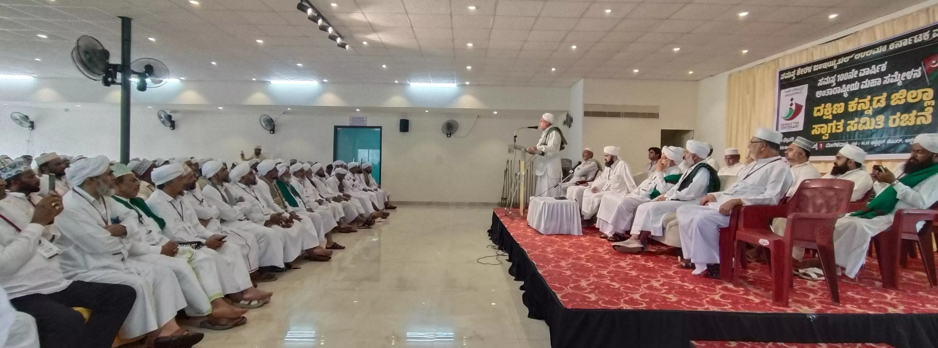 ಮಂಗಳೂರು: ಕಾಸರಗೋಡಿನ ಕುಣಿಯ ಎಂಬಲ್ಲಿ 2026 ಫೆ.4ರಿಂದ 8ರ ತನಕ "ಆದರ್ಶ ಪರಿಶುದ್ಧತೆ ಶತಮಾನಗಳಿಂದ..." ಎಂಬ ಧ್ಯೇಯವಾಕ್ಯದೊಂದಿಗೆ ನಡೆಯುವ ಸಮಸ್ತ ಕೇರಳ ಜಂಇಯ್ಯತುಲ್ ಉಲಮಾದ 100ನೇ ವಾರ್ಷಿಕ ಅಂತಾರಾಷ್ಟ್ರೀಯ ಮಹಾ ಸಮ್ಮೇಳನದ ಪ್ರಚಾರಾರ್ಥ ಪಾಣೆ ಮಂಗಳೂರು ಅಕ್ಕರಂಗಡಿಯಲ್ಲಿರುವ ಎಚ್.ಎಚ್. ಸೆಂಟರ್ನ ಸಭಾಂಗಣದಲ್ಲಿ ದ.ಕ. ಜಿಲ್ಲಾ ಮಟ್ಟದ ಸ್ವಾಗತ ಸಮಿತಿಯನ್ನು ರಚಿಸಲಾಯಿತು.