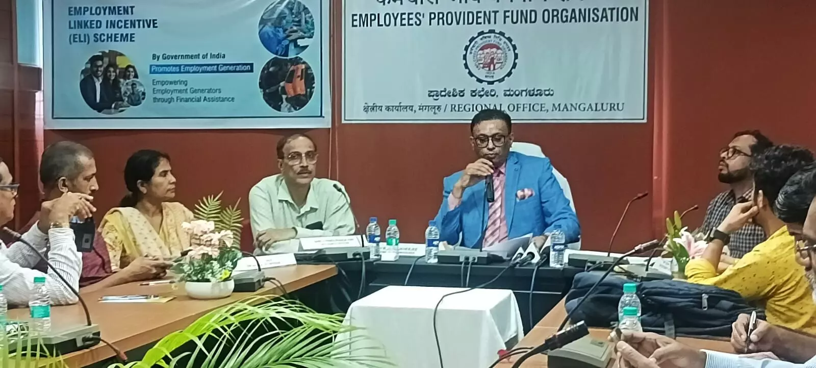 ಕಾರ್ಮಿಕರ ಭವಿಷ್ಯ ನಿಧಿ ಸಂಸ್ಥೆಯ ಮಂಗಳೂರಿನ ಪ್ರಾದೇಶಿಕ ಕಚೇರಿಯಲ್ಲಿ ಸೋಮವಾರ ಸುದ್ದಿಗೋಷ್ಠಿ ಯಲ್ಲಿ ಮಾತನಾಡಿ ‘ ದಕ್ಷಿಣ ಕನ್ನಡ ಜಿಲ್ಲೆಯಲ್ಲಿ 25,000 ಹೊಸ ಉದ್ಯೋಗಿಗಳಿಗೆ ಮತ್ತು 3,000 ಸಂಸ್ಥೆಗಳಿಗೆ ಈ ಯೋಜನೆಯ ಅಡಿಯಲ್ಲಿ ಗುರಿ ಹೊಂದಲಾಗಿದೆ ಎಂದರು.