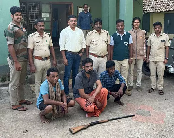 ಬೆಳ್ತಂಗಡಿ: ಪಟ್ರಮೆ ದಡಂತಮಲೆ ಅರಣ್ಯದಲ್ಲಿ ಕಡವೆ ಬೇಟೆ; ಬಂದೂಕು ಸಹಿತ ಮೂವರ ಬಂಧನ