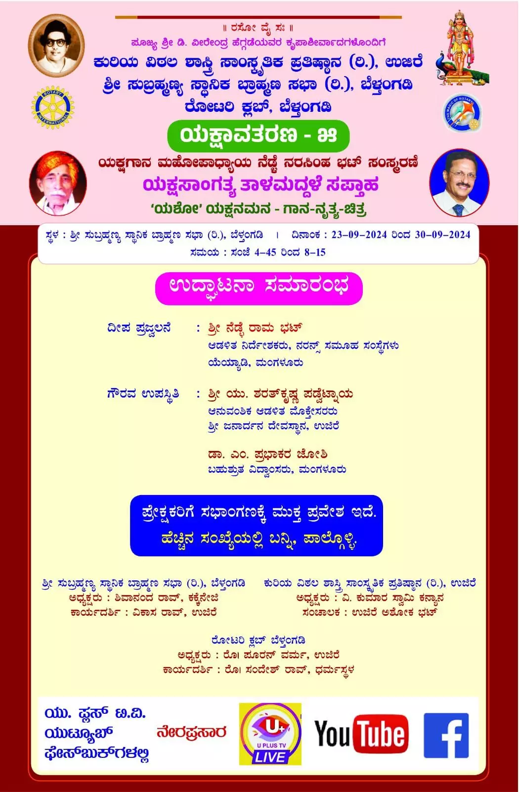 ಬೆಳ್ತಂಗಡಿ: ಸೆಪ್ಟೆಂಬರ್ 23 ರಿಂದ ‘ಯಕ್ಷಾವತರಣ – 5’ ನೆಡ್ಲೆ ನರಸಿಂಹ ಭಟ್ ಸಂಸ್ಮರಣೆ ಸಪ್ತಾಹ