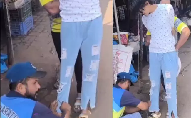 ಬೆಳ್ತಂಗಡಿ | ಸ್ಕ್ರ್ಯಾಚ್ ಜೀನ್ಸ್ ಧರಿಸಿದ್ದ ಹುಡುಗನ ಪ್ಯಾಂಟ್ ಹೊಲಿದ ಯುವಕರು; ವಿಡಿಯೋ ವೈರಲ್