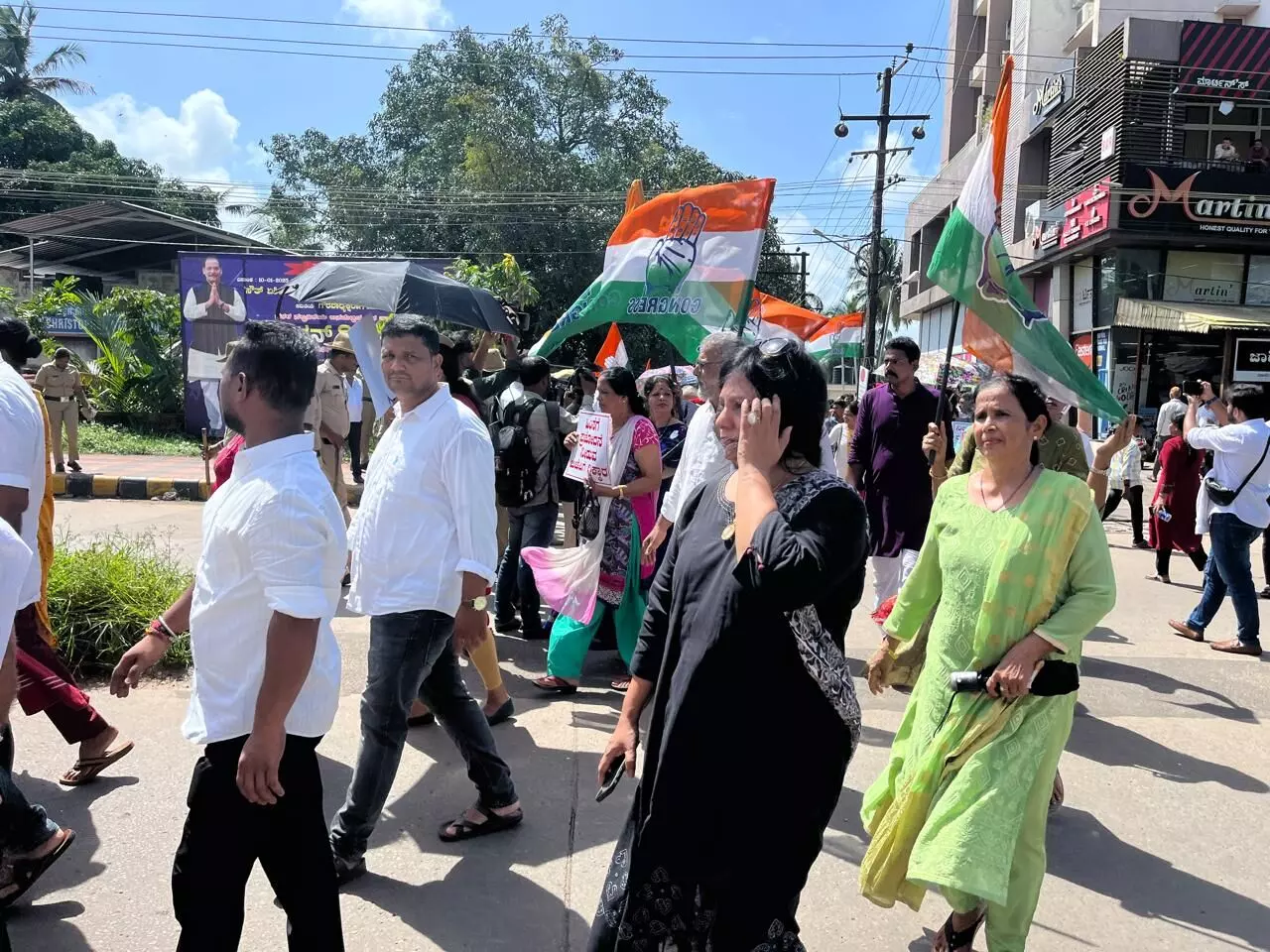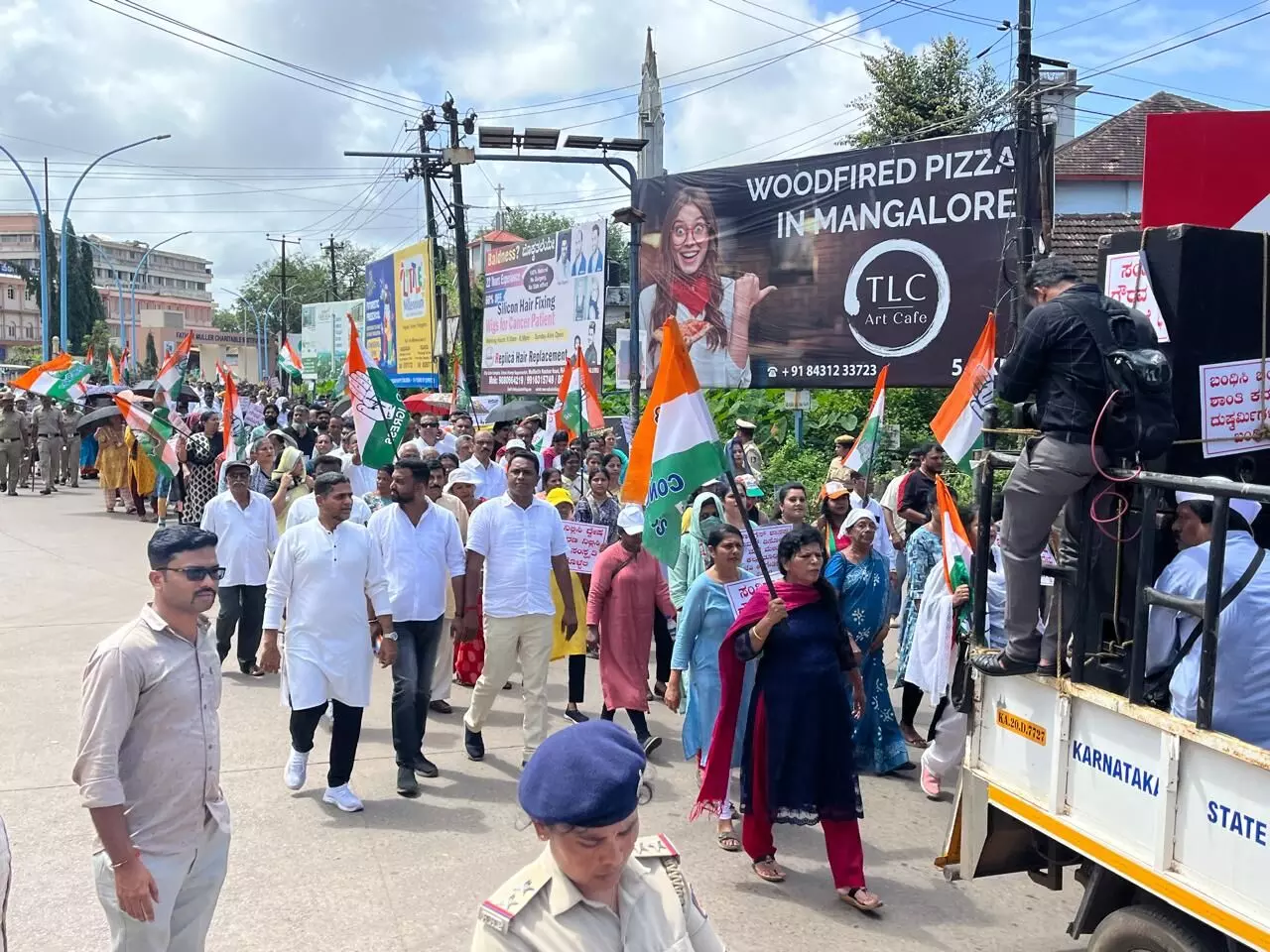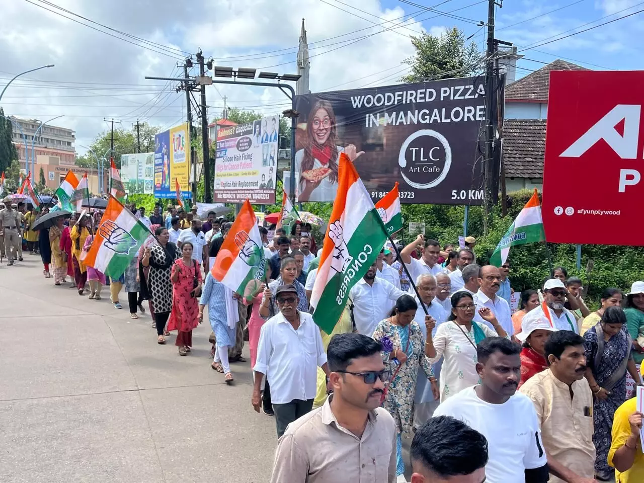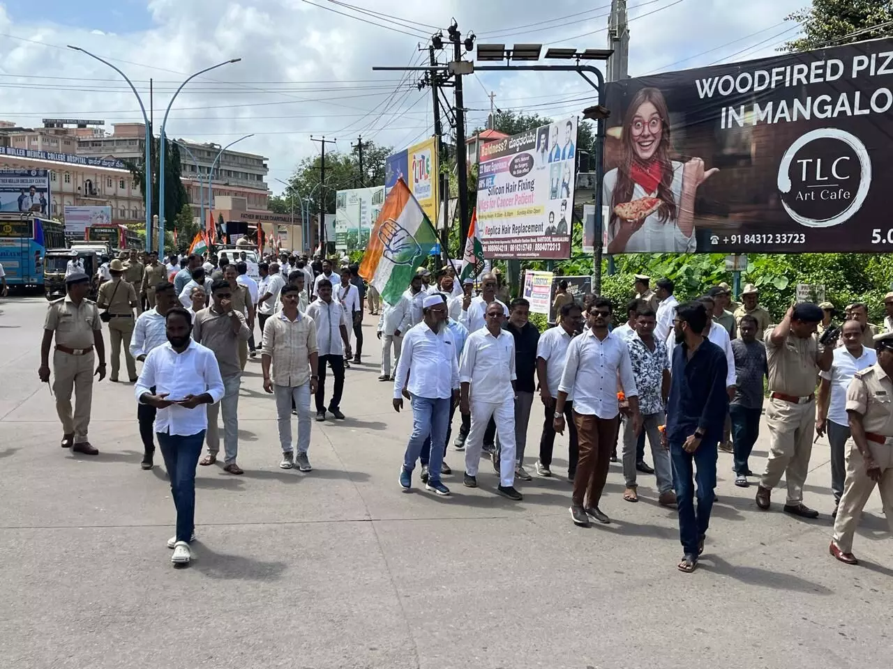 ವಿಧಾನ ಪರಿಷತ್ ಸದಸ್ಯ ಐವನ್ ಡಿಸೋಜಾ ಸಹಿತ, ಜಿಲ್ಲಾ ಕಾಂಗ್ರೆಸ್ ನಾಯಕರು, ಪದಾಧಿಕಾರಿಗಳು ಹಾಗೂ ಕಾರ್ಯಕರ್ತರು ವೆಲೆನ್ಸಿಯಾದಿಂದ ಕಂಕನಾಡಿ ವೃತ್ತದವರೆಗೆ ಬಿಜೆಪಿ ಹಾಗೂ ರಾಜ್ಯಪಾಲರ ವಿರುದ್ಧ ಘೋಷಣೆಗಳನ್ನ ಕೂಗುತ್ತಾ ಪಾದಯಾತ್ರೆ ನಡೆಸಿದರು.