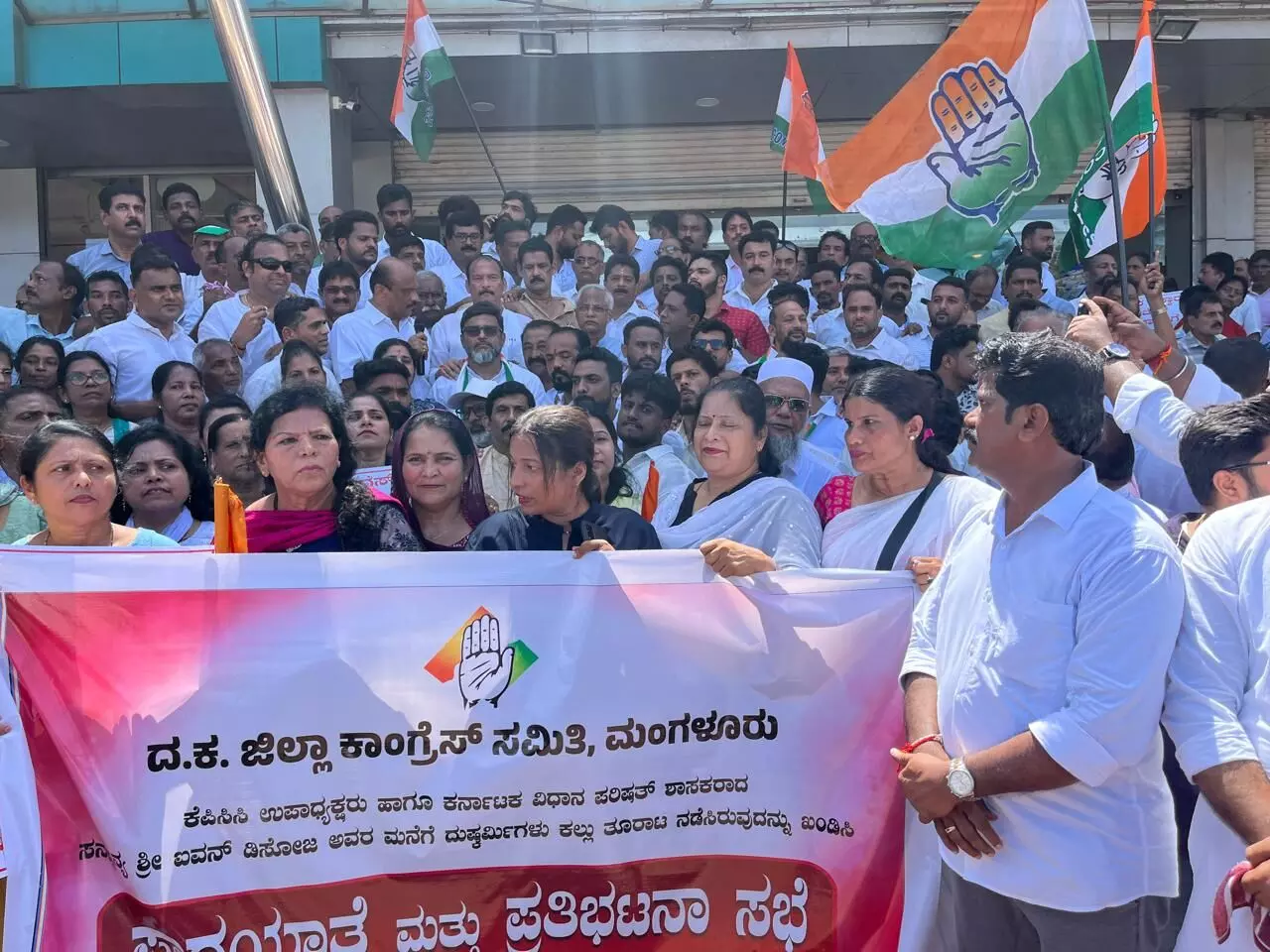 ಮಂಗಳೂರು, ಆ. 23: ವಿಧಾನ ಪರಿಷತ್ ಸದಸ್ಯ ಐವನ್ ಡಿಸೋಜ ಮನೆಗೆ ಕಲ್ಲು ತೂರಾಟ ನಡೆದ ಪ್ರಕರಣವನ್ನು ವಿರೋಧಿಸಿ ದ ಕ ಜಿಲ್ಲಾ ಕಾಂಗ್ರೆಸ್ ಸಮಿತಿ ವತಿಯಿಂದ ಶುಕ್ರವಾರ ಐವನ್ ಡಿಸೋಜಾ ಅವರ ಮನೆಯಿಂದ ಪಾದಯಾತ್ರೆ ಹಾಗೂ ಕಂಕನಾಡಿ ವೃತ್ತದ ಬಳಿ ಪ್ರತಿಭಟನಾ ಸಭೆ ನಡೆಯಿತು.