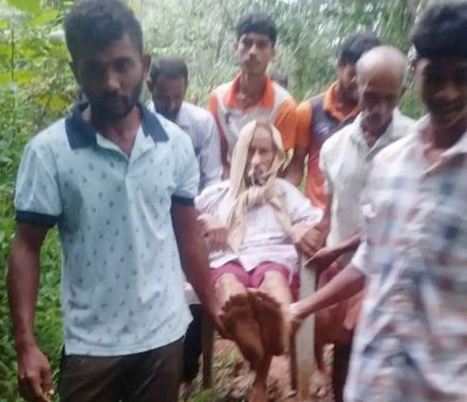 ಸುಳ್ಯ: ರಸ್ತೆ ಸಂಪರ್ಕ ಸರಿ ಇಲ್ಲದ ಕಾರಣ ಅನಾರೋಗ್ಯ ಬಾಧಿಸಿದ್ದ ವೃದ್ಧರೊಬ್ಬರನ್ನು ಕುರ್ಚಿಯಲ್ಲಿ ಕುಳ್ಳಿರಿಸಿ ಗ್ರಾಮಸ್ಥರು ಹೊತ್ತುಕೊಂಡು ಹೋದ ಘಟನೆ ಮಡಪ್ಪಾಡಿ ಗ್ರಾಮದ ನಡುಬೆಟ್ಟು ಎಂಬಲ್ಲಿ ನಡೆದಿದೆ.