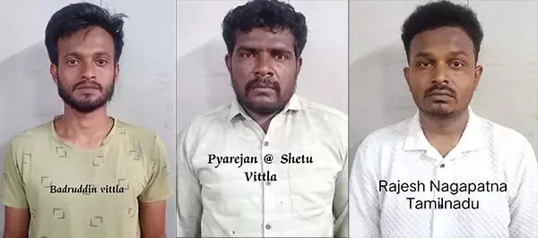 ಮೂಲತ: ಚಿಕ್ಕಮಗಳೂರಿನ ಹಾಲಿ ವಿಟ್ಲದ ಪಾತಿರತೋಟ ನಿವಾಸಿ ಪ್ಯಾರೇಜಾನ್ ಯಾನೆ ಸೇಟು(37), ವಿಟ್ಲದ ಪಾತಿರತೋಟದ ಬದ್ರುದ್ದೀನ್ ಯಾನೆ ಬದ್ರು (28 ), ತಮಿಳುನಾಡು ನಾಗಪಟ್ಟಿನಂನ ರಾಜೇಶ್.ಆರ್(22) ಬಂಧಿತ ಆರೋಪಿಗಳು.