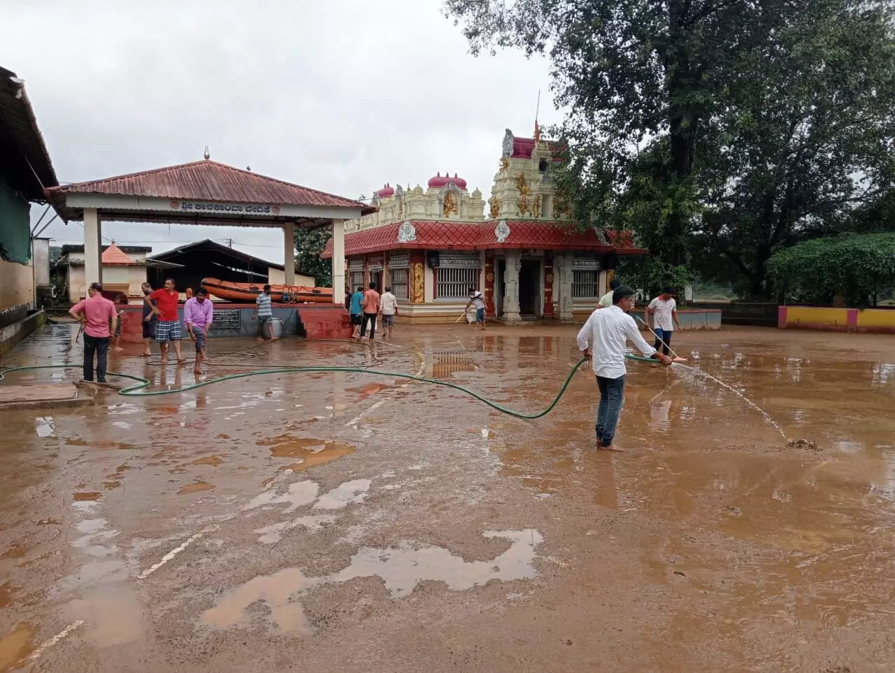 ತುಂಬಿದ ಕೆಸರು; ಭಕ್ತಾದಿಗಳಿಂದ ಸ್ವಚ್ಛತೆ: ಇಲ್ಲಿನ ಶ್ರೀ ಸಹಸ್ರಲಿಂಗೇಶ್ವರ- ಮಹಾಕಾಳಿ ದೇವಾಲಯದ ಆವರಣದಲ್ಲಿ ನೆರೆ ಬಂದು ಇಳಿದ ಬಳಿಕ ಕೆಸರಿನ ರಾಶಿ ತುಂಬಿಕೊಂಡಿದ್ದು, ದೇವಾಲಯದ ವ್ಯವಸ್ಥಾಪನಾ ಸಮಿತಿ, ಸಿಬ್ಬಂದಿ ವರ್ಗ ಹಾಗೂ ಭಕ್ತಾದಿಗಳು ಸ್ವಚ್ಚತಾ ಕಾರ್ಯದಲ್ಲಿ ನಿರತರಾಗಿದ್ದಾರೆ.