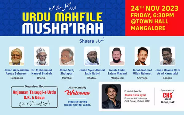 ನ.24 : ಮಂಗಳೂರಿನಲ್ಲಿ 'ಉರ್ದು ಮೆಹಫಿಲೇ ಮುಷಾಯಿರ' ಕಾರ್ಯಕ್ರಮ