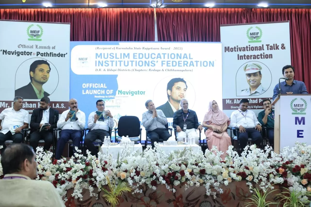 ನಗರದ ಕಂಕನಾಡಿಯ ಜಮೀಯತುಲ್ ಫಲಾಹ್ ಸಭಾಂಗಣದಲ್ಲಿ ಗುರುವಾರ ನಡೆದ ಕಾರ್ಯಕ್ರಮ ದಲ್ಲಿ ಮುಸ್ಲಿಂ ವಿದ್ಯಾಸಂಸ್ಥೆಗಳ ಒಕ್ಕೂಟ (ಮೀಫ್ ) ಇದರ ಆಯ್ದ ವಿದ್ಯಾ ಸಂಸ್ಥೆಗಳ ಪ್ರೌಢ ಶಾಲೆ ಮತ್ತು ಪಿಯುಸಿ ತರಗತಿಗಳಲ್ಲಿ ಈ ವರ್ಷದಿಂದ ಅಳವಡಿಸಲಾಗುವ ನಾಗರಿಕ ಸೇವಾ ಪರೀಕ್ಷೆಗೆ ತಯಾರಿಗೆ ಸಂಬಂಧಿಸಿದ ಪಠ್ಯಪುಸ್ತಕ ‘ನ್ಯಾವಿಗೇಟರ್ ಆ್ಯಂಡ್ ಪಾತ್ಫೈಂಡರ್ ’ನ್ನು ಬಿಡುಗಡೆಗೊಳಿಸಿ ಮಾತನಾಡಿದರು.