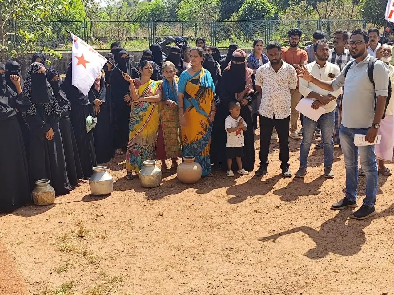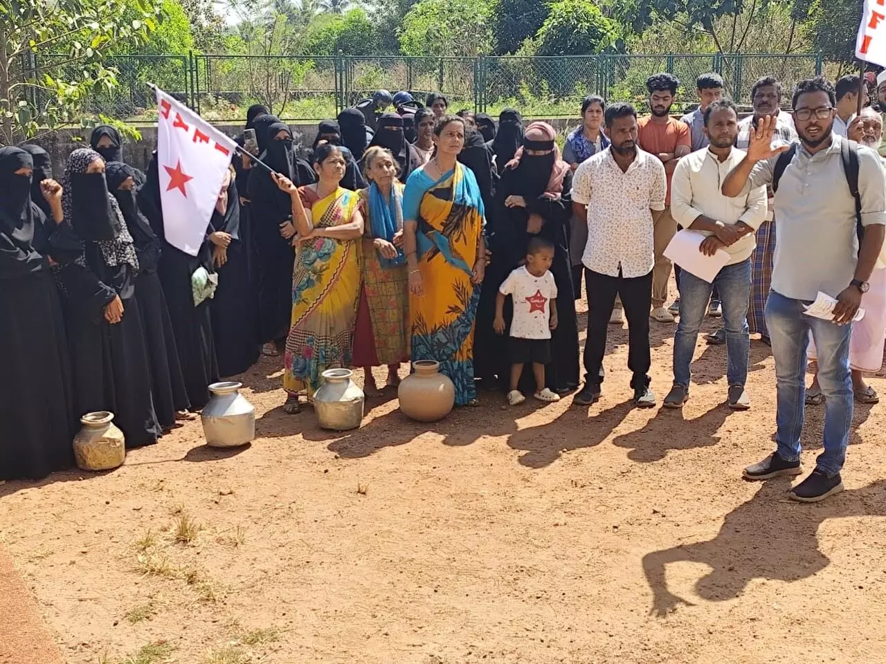 ದೇರಳಕಟ್ಟೆ, ಫೆ.16: ಬಾಳೆಪುಣಿ ಗ್ರಾಮದಲ್ಲಿ ಕುಡಿಯುವ ನೀರಿನ ಸಮಸ್ಯೆಗೆ ಶಾಶ್ವತ ಪರಿಹಾರ ಕಲ್ಪಿಸುವಂತೆ ಒತ್ತಾಯಿಸಿ ಉಳ್ಳಾಲ ತಾಲೂಕು ಡಿವೈಎಫ್ ಐ ನೇತೃತ್ವದಲ್ಲಿ ಗ್ರಾಮದ ಮಹಿಳೆಯರು ಬಾಳೆ ಪುಣಿ ಪಂಚಾಯತ್ ಕಚೇರಿ ಎದುರು ಖಾಲಿ ಕೊಡಗಳನ್ನಿಟ್ಟು ಧರಣಿ ನಡೆಸಿದರು.