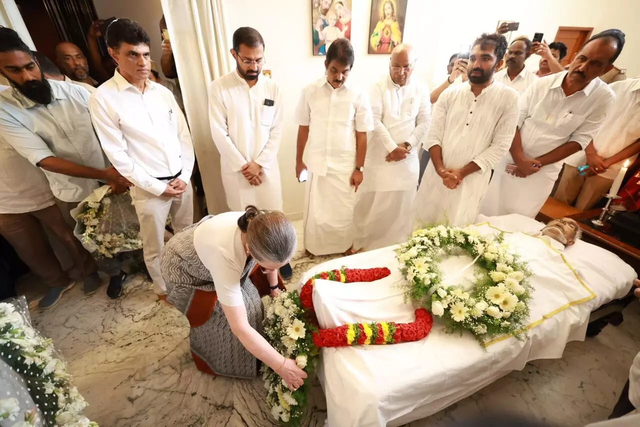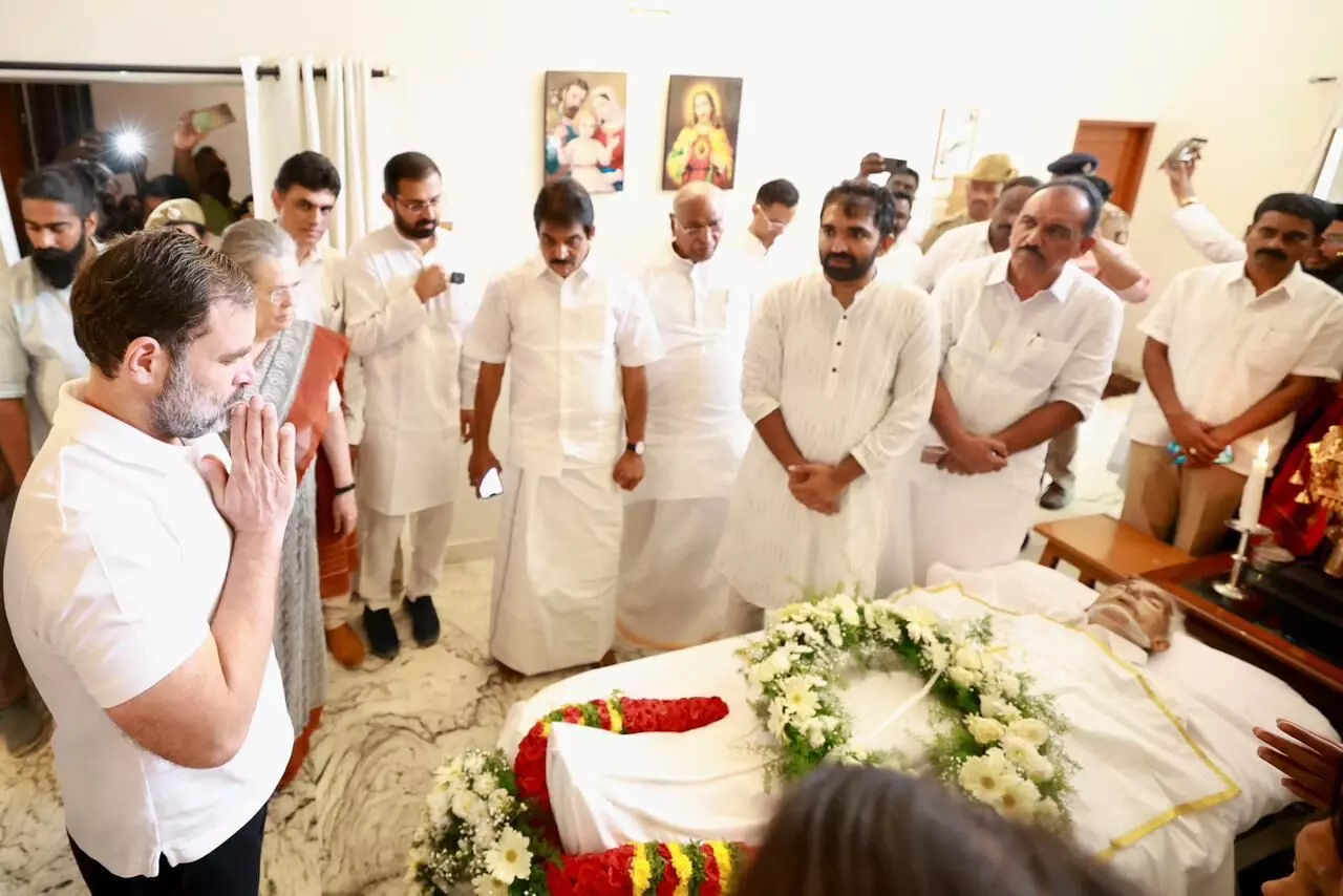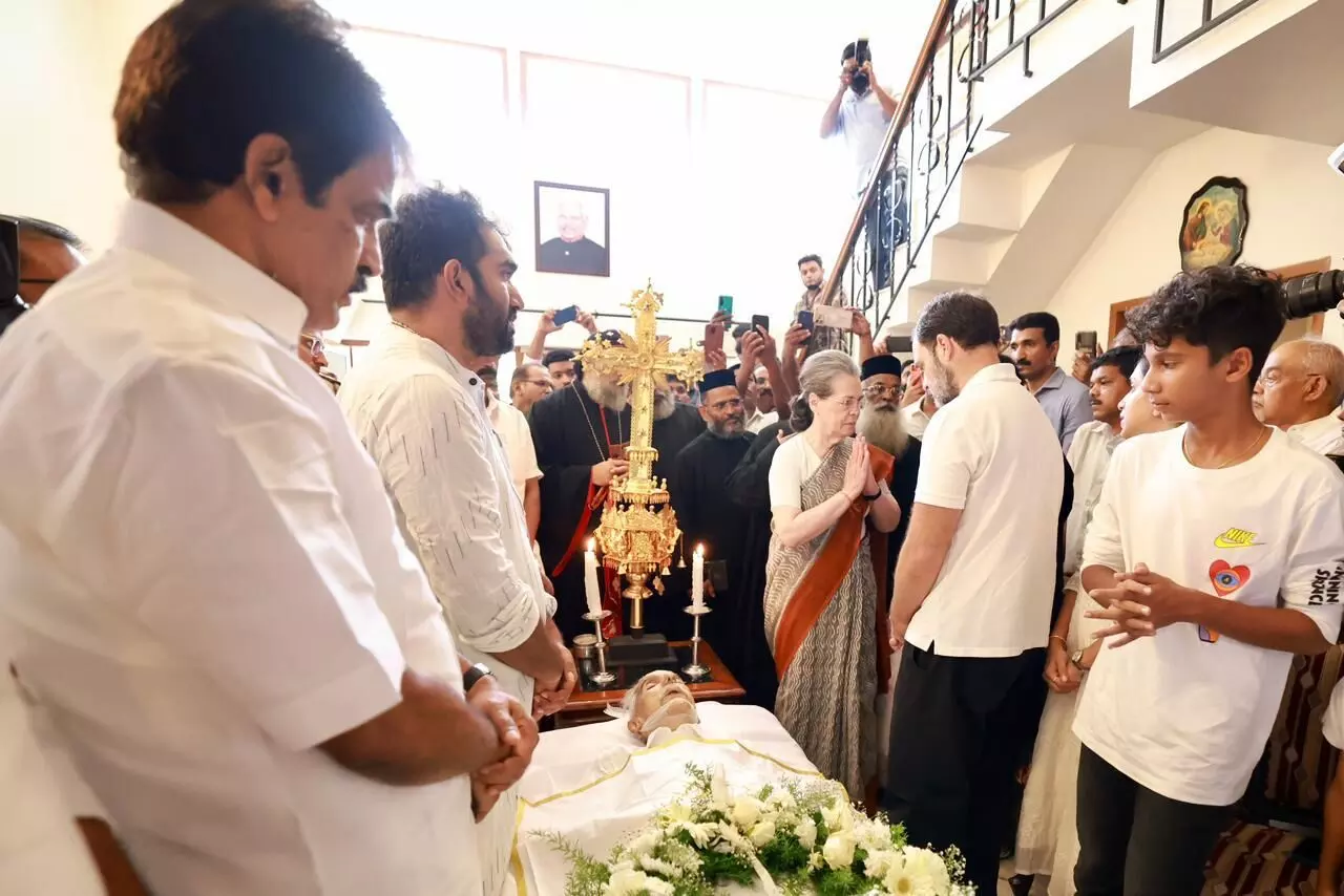 ಕೇರಳ ಮಾಜಿ ಸಿಎಂ ಉಮ್ಮನ್ ಚಾಂಡಿ ಅಂತಿಮ ದರ್ಶನ ಪಡೆದ ಸೋನಿಯಾ, ರಾಹುಲ್