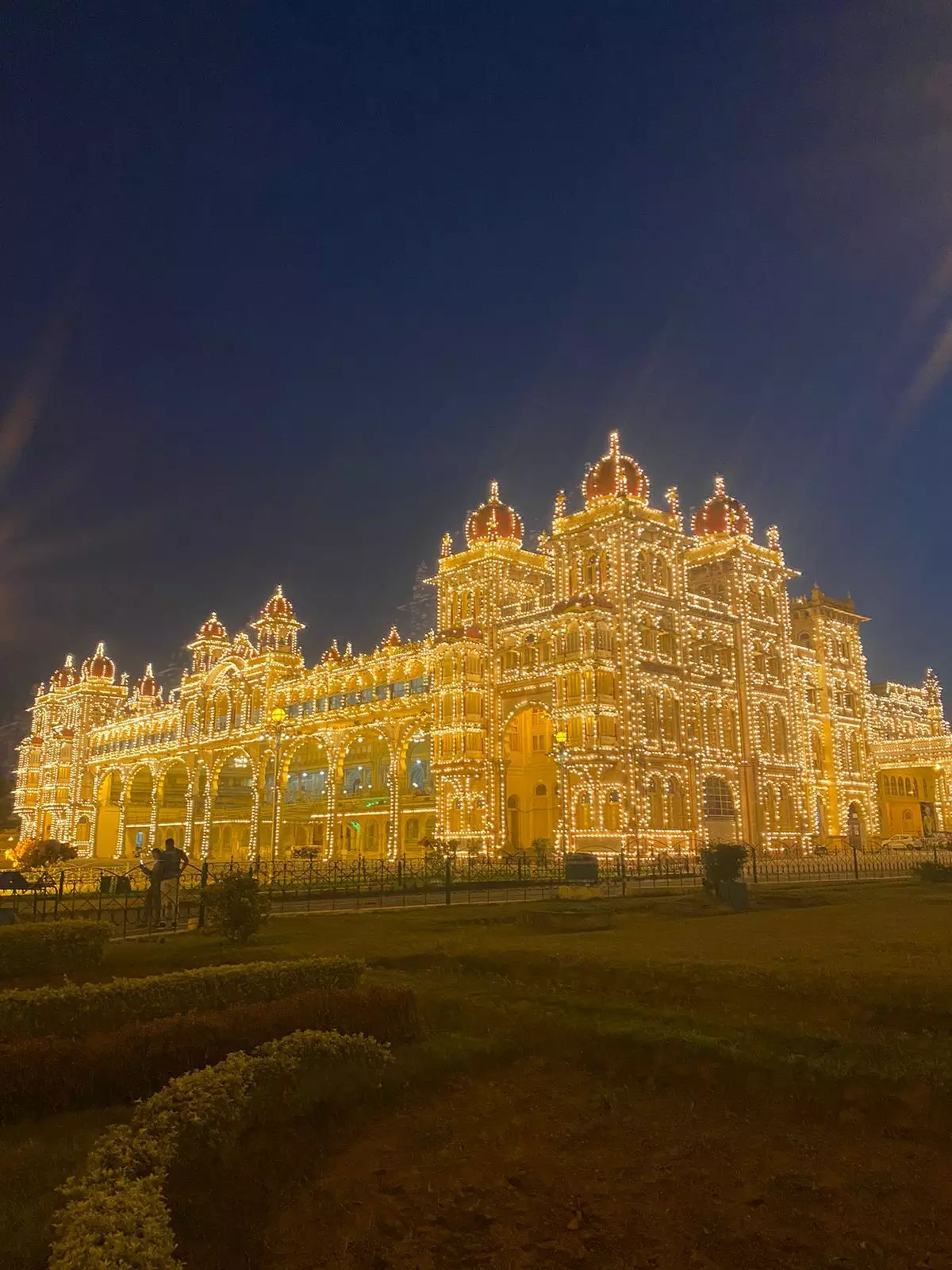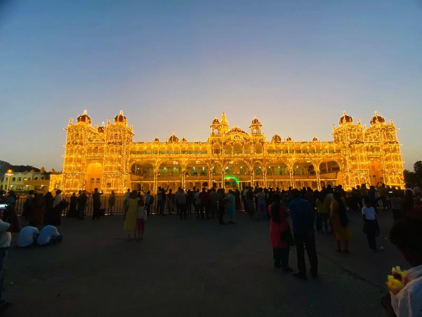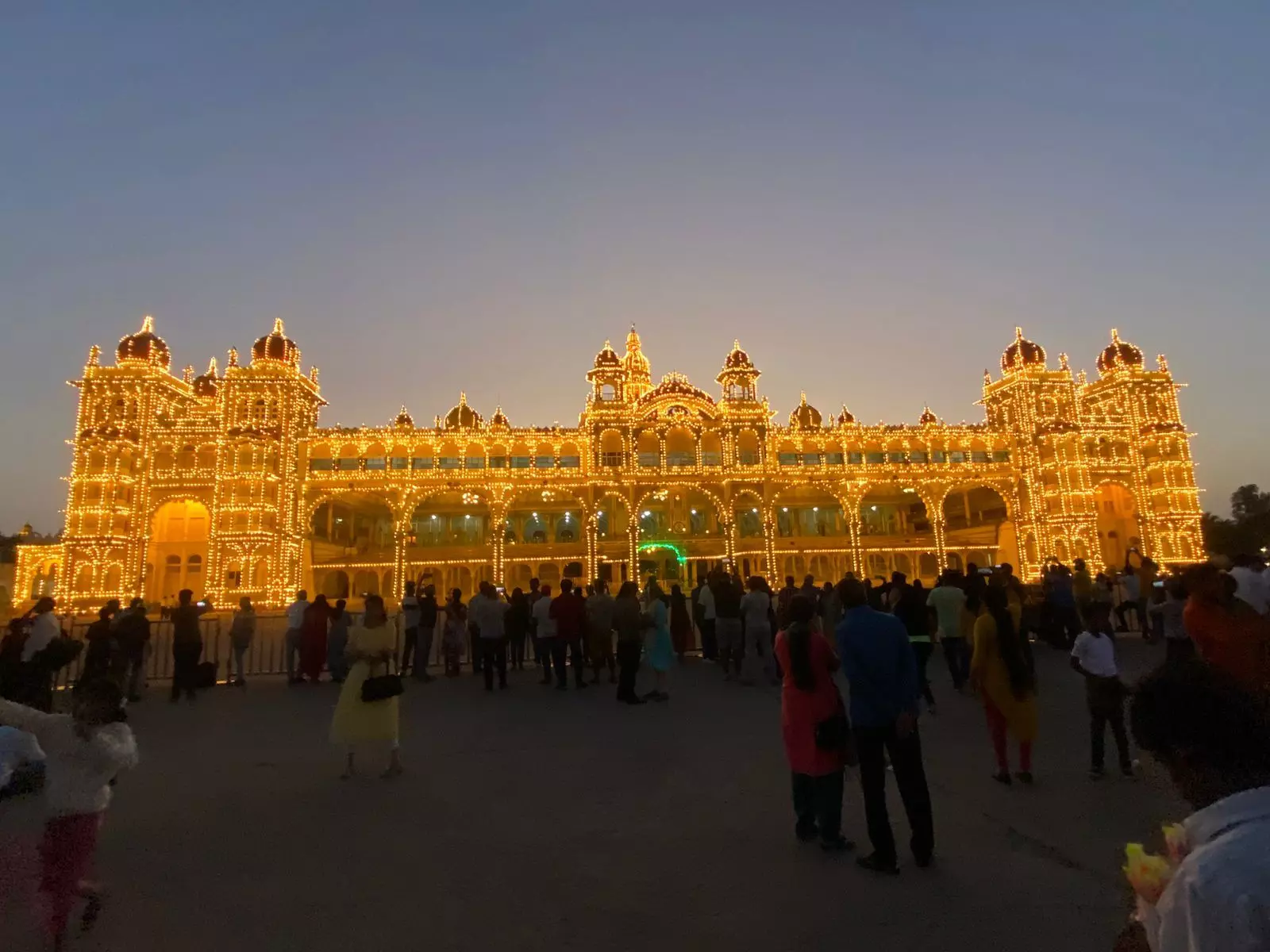 ವಿದ್ಯುದ್ದೀಪಗಳಿಂದ ಅಲಂಕಾರಗೊಂಡ ಮೈಸೂರು ಅರಮನೆ