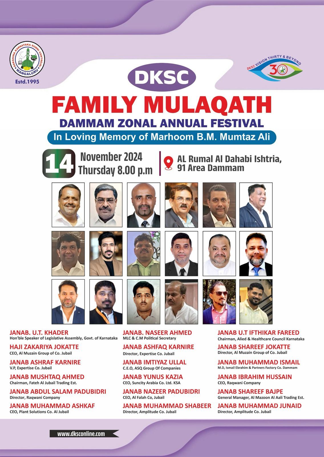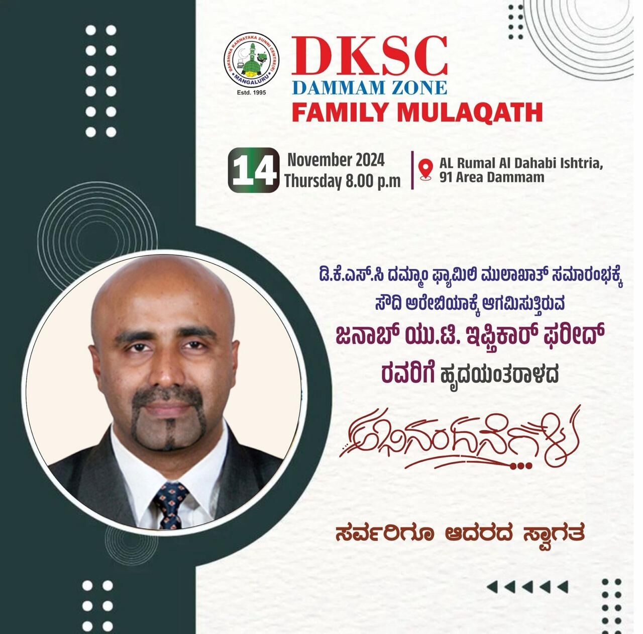 ಡಿಕೆಎಸ್ಸಿ ದಮ್ಮಾಮ್ ವತಿಯಿಂದ ನ.14 ರಂದು ʼಫ್ಯಾಮಿಲಿ ಮುಲಾಖಾತ್ʼ