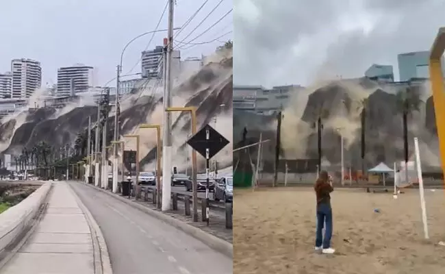 Whoahh! The M5.6 earthquake less than an hour ago has triggered landslides on the Costa Verde in Lima, Peru pic.twitter.com/zBNCkP09Xr