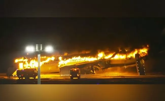 ಟೋಕಿಯೋ ವಿಮಾನ ನಿಲ್ದಾಣದ ರನ್-ವೇ ನಲ್ಲಿ 400 ಪ್ರಯಾಣಿಕರಿದ್ದ ವಿಮಾನಕ್ಕೆ ಬೆಂಕಿ