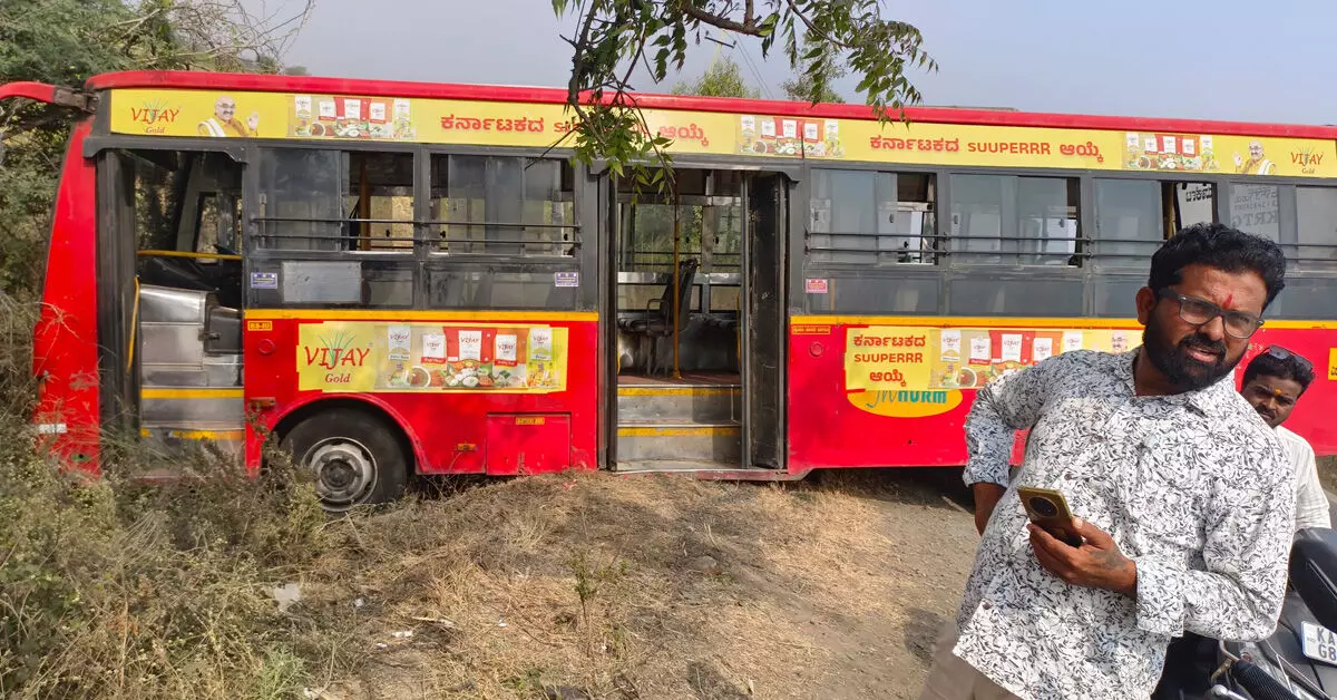 ಕಲಬುರಗಿಯಿಂದ ಚಿತ್ತಾಪುರಕ್ಕೆ ತೆರಳುತ್ತಿದ್ದ ಬಸ್ಗೆ ಈ ಅವಘಡ ಸಂಭವಿಸಿದೆ ಎಂದು ತಿಳಿದು ಬಂದಿದೆ. ಬಸ್ನಲ್ಲಿ 30ಕ್ಕೂ ಹೆಚ್ಚು ಪ್ರಯಾಣಿಕರು ಪ್ರಯಾಣಿಸುತ್ತಿದ್ದು, ಅವಘಡದ ವೇಳೆ ಒರ್ವ ಮಹಿಳೆಗೆ ಗಾಯಗಳಾಗಿವೆ ಎಂದು ತಿಳಿದು ಬಂದಿದೆ.