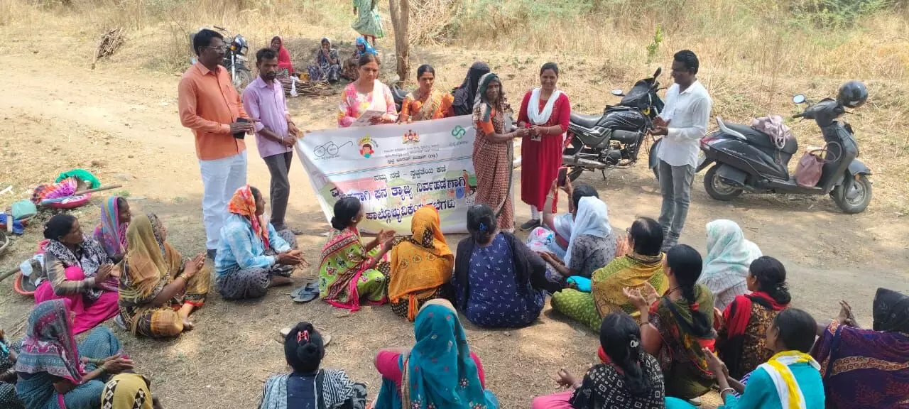 ಕಲಬುರಗಿ : ಹಾಗರಗಾ ಗ್ರಾಮ ಪಂಚಾಯತ್ ವ್ಯಾಪ್ತಿಯ ಆಜಾದಪೂರ ಗ್ರಾಮದ ಕೆರೆ ಹೂಳೆತ್ತುವ ಕಾಮಗಾರಿಯ ಸ್ಥಳದಲ್ಲಿ ಸಾಹಸ ಸಂಸ್ಥೆ ಸಹಯೋಗದೊಂದಿಗೆ ಸ್ವಚ್ಛ ಭಾರತ ಮಿಷನ್ ಯೋಜನೆಯ ಕುರಿತು ಅರಿವು ಮೂಡಿಸಲಾಯಿತು.