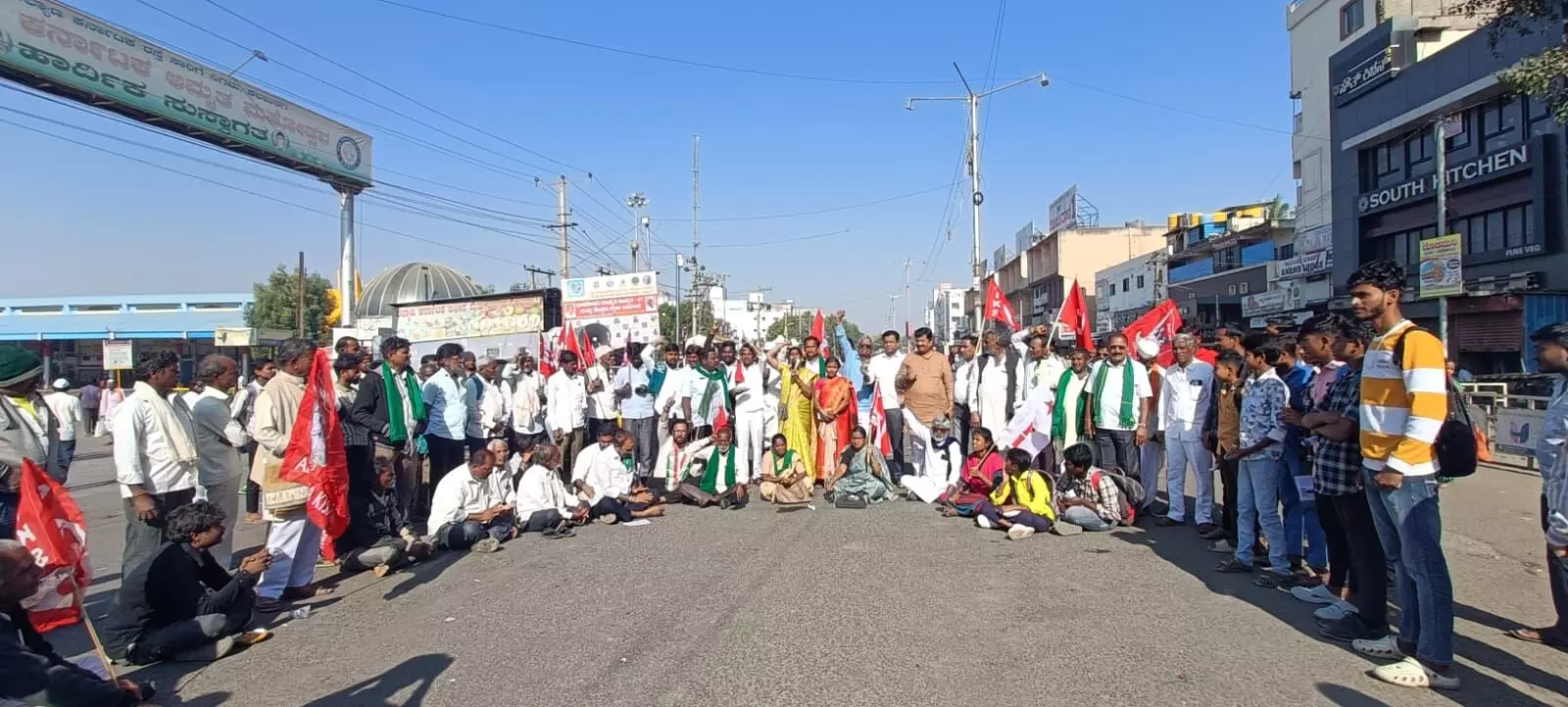 ಪ್ರತಿಭಟನೆಯಲ್ಲಿ ಪಾಲ್ಗೊಂಡ ರೈತ ಹೋರಾಟಗಾರರು, ಕಳೆದ ಬಾರಿಗಿಂತ ತೊಗರಿ ಬೆಳೆ ಈ ಸಲ ಬಹಳಷ್ಟು ನಷ್ಟವಾಗಿದೆ, ಸರಕಾರ ಕೂಡಲೆ ಎಚ್ಚೆತ್ತು ಇದಕ್ಕೆ ಪ್ರತ್ಯೇಕ ವಿಶೇಷ ಪ್ಯಾಕೇಜ್ ಘೋಷಿಸಬೇಕು, ಜಿಲ್ಲೆಯಲ್ಲಿ ಬಿತ್ತನೆ ಮಾಡಿದ 6.06 ಲಕ್ಷ ಹೆಕ್ಟೇರ್ ಪ್ರದೇಶದಲ್ಲಿ 2 ಲಕ್ಷ ಹೆಕ್ಟೇರ್ ತೊಗರಿ ಬೆಳೆ ಸಂಪೂರ್ಣ ನಾಶವಾಗಿದೆ, ಒಣಗಿದ ತೊಗರಿಗೆ ಪ್ರತಿ ಎಕರೆಗೆ 25 ಸಾವಿರ ರೂಪಾಯಿ ಪರಿಹಾರ ಘೋಷಿಸಬೇಕು. ಒಣಗಿದ ತೊಗರಿಗೆ ಬೆಳೆ ವಿಮೆ ಮಾಡಬೇಕು, ಪ್ರತಿ ಕ್ವಿಂಟಾಲ್ ತೊಗರಿಗೆ 12,550 ರೂಪಾಯಿ ಬೆಂಬಲ ಬೆಲೆ, ಸಿಎಂ ಆವರ್ಥ ನಿಧಿಯಿಂದ 500 ರೂಪಾಯಿ ಪ್ರೋತ್ಸಾಹಧನ ನೀಡಬೇಕು, ತೊಗರಿ ಮಂಡಳಿಗೆ ಪ್ರತ್ಯೇಕ 25 ಕೋಟಿ ಮೀಸಲಿಡಬೇಕು, ಕಾಫಿ ಮಂಡಳಿಗೆ ತೋರುತ್ತಿರುವ ಕಾಳಜಿಯನ್ನು ತೊಗರಿ ಮಂಡಳಿಗೂ ಮುತುವರ್ಜಿ ವಹಿಸಬೇಕು. ರೈತರು ಬೆಳೆದಿರುವ ಇತರ ಬೆಳೆಗಳಿಗೆ ಎಂಎಸ್ಪಿ ನಿರ್ಣಯಿಸಬೇಕೆಂದು ಕೇಂದ್ರ ಮತ್ತು ರಾಜ್ಯ ಸರಕಾರಗಳಿಗೆ ಒತ್ತಾಯಿಸಿದ್ದಾರೆ.