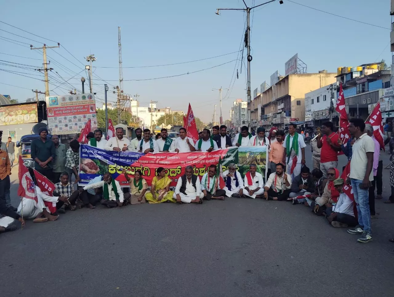 ನಸುಕಿನ ಜಾವದಲ್ಲಿ ಪ್ರತಿಭಟನೆಗೆ ಇಳಿದ ರೈತ ಮುಖಂಡರು, ಈ ವರ್ಷ ತೊಗರಿ ಬೆಳೆಗಾರರಿಗೆ ತುಂಬಾ ನಷ್ಟವಾಗಿದೆ, ಕೂಡಲೇ ರೈತರ ಸಮಸ್ಯೆಗಳನ್ನು ಈಡೇರಿಸಬೇಕು, ಬೆಳೆ ಹಾನಿ ಅನುಭವಿಸಿದ ಸಾವಿರಾರು ರೈತರು ಬೀದಿ ಪಾಲಾಗಿದ್ದಾರೆ. ಅವರ ನೆರವಿಗೆ ನಿಂತು ಸರಕಾರ ಪರಿಹಾರವಾಗಿ ವಿಶೇಷ ಪ್ಯಾಕೇಜ್ ಘೋಷಿಸಬೇಕು ಎಂದು ಘೋಷಣೆಗಳನ್ನು ಹಾಕಿದರು.