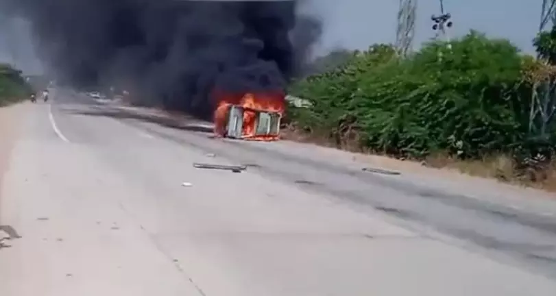 ಯಾದಗಿರಿಯಿಂದ ಕಲಬುರಗಿಗೆ ಬರುವಾಗ ರಸ್ತೆ ಮಧ್ಯೆ ಈ ಘಟನೆ ಸಂಭವಿಸಿದ್ದು, ಅಪಘಾತದಲ್ಲಿ ಇಬ್ಬರಿಗೆ ಬೆಂಕಿ ತಗುಲಿ ಗಾಯಗೊಂಡಿದ್ದಾರೆ.