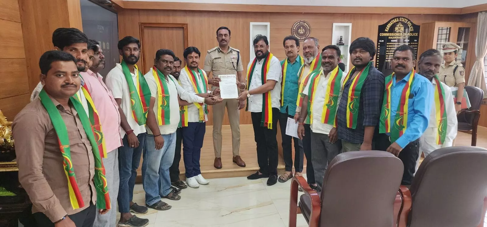 ಕಲಬುರಗಿ: ಬೆಳಗಾವಿ ಜಿಲ್ಲೆಯ ಬಾಳೆಕುಂದ್ರಿಯಲ್ಲಿ ಕೆ.ಎಸ್.ಎಸ್.ಆರ್.ಟಿ.ಸಿ.ಯ ನಿರ್ವಾಹಕ ಮತ್ತು ಚಾಲಕ ಮೇಲಿನ ಹಲ್ಲೆಯನ್ನು ಖಂಡಿಸಿ ತಪ್ಪಿತಸ್ಥರ ವಿರುದ್ಧ ಕಠಿಣ ಕ್ರಮಕ್ಕೆ ಒತ್ತಾಯಿಸಿ ಜಯ ಕರ್ನಾಟಕ ಸಂಘಟನೆ ಮುಖಂಡರು ನಗರ ಪೊಲೀಸ್ ಆಯುಕ್ತರ ಮುಖಾಂತರ ಸಾರಿಗೆ ಸಚಿವ ರಾಮಲಿಂಗಾರೆಡ್ಡಿ ಅವರಿಗೆ ಮನವಿ ಸಲ್ಲಿಸಿದರು.