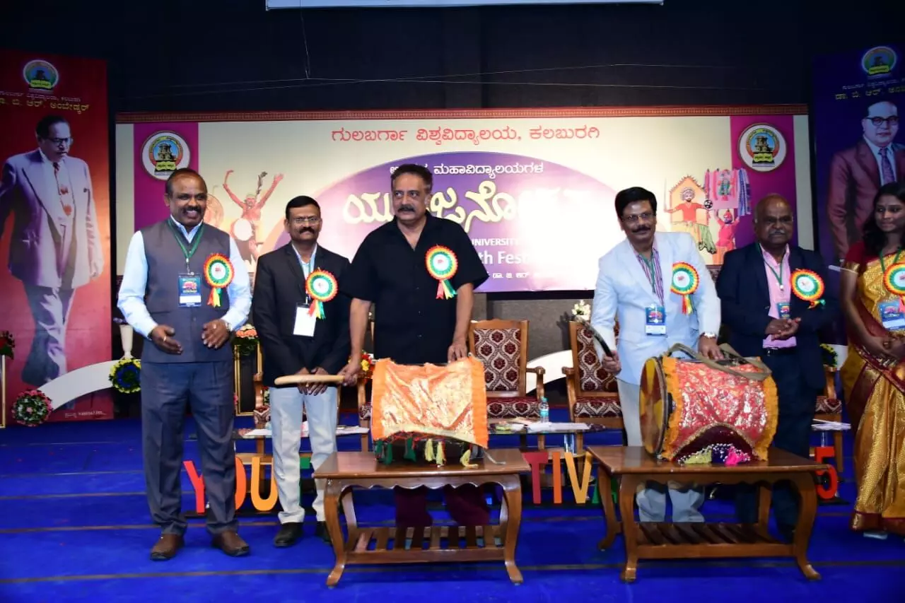 ಶನಿವಾರ ಗುಲ್ಬರ್ಗಾ ವಿಶ್ವವಿದ್ಯಾಲಯದ ಡಾ.ಬಿ.ಆರ್.ಅಂಬೇಡ್ಕರ್ ಸಭಾಂಗಣದಲ್ಲಿ ನಡೆದ 2025-26ನೇ ಶೈಕ್ಷಣಿಕ ಸಾಲಿನ ಗುಲ್ಬರ್ಗಾ ವಿಶ್ವವಿದ್ಯಾಲಯ ಅಂತರ ಮಹಾವಿದ್ಯಾಲಯಗಳ ಯುವಜನೋತ್ಸವಕ್ಕೆ ಡೊಳ್ಳು ಬಾರಿಸುವ ಮೂಲಕ ವಿದ್ಯುಕ್ತ ಚಾಲನೆ ನೀಡಿ ಮಾತನಾಡಿದ ಅವರು, ಲೈಕ್, ಡಿಸ್ಲೈಕ್ ನಿಂದ ಭವಿಷ್ಯ-ಬದುಕು ಕಟ್ಟಿಕೊಳ್ಳಲಾಗಲ್ಲ. ಕುಟುಂಬಸ್ಥರು, ನೆರ ಹೊರೆಯವರೊಂದಿಗೆ ಬೆರೆಯಿರಿ. ನಾವು ನಾವಾಗಿರೋಣ. ಆ ನಿಟ್ಟಿನಲ್ಲಿ ಸಾಗೋಣ ಎಂದರು.