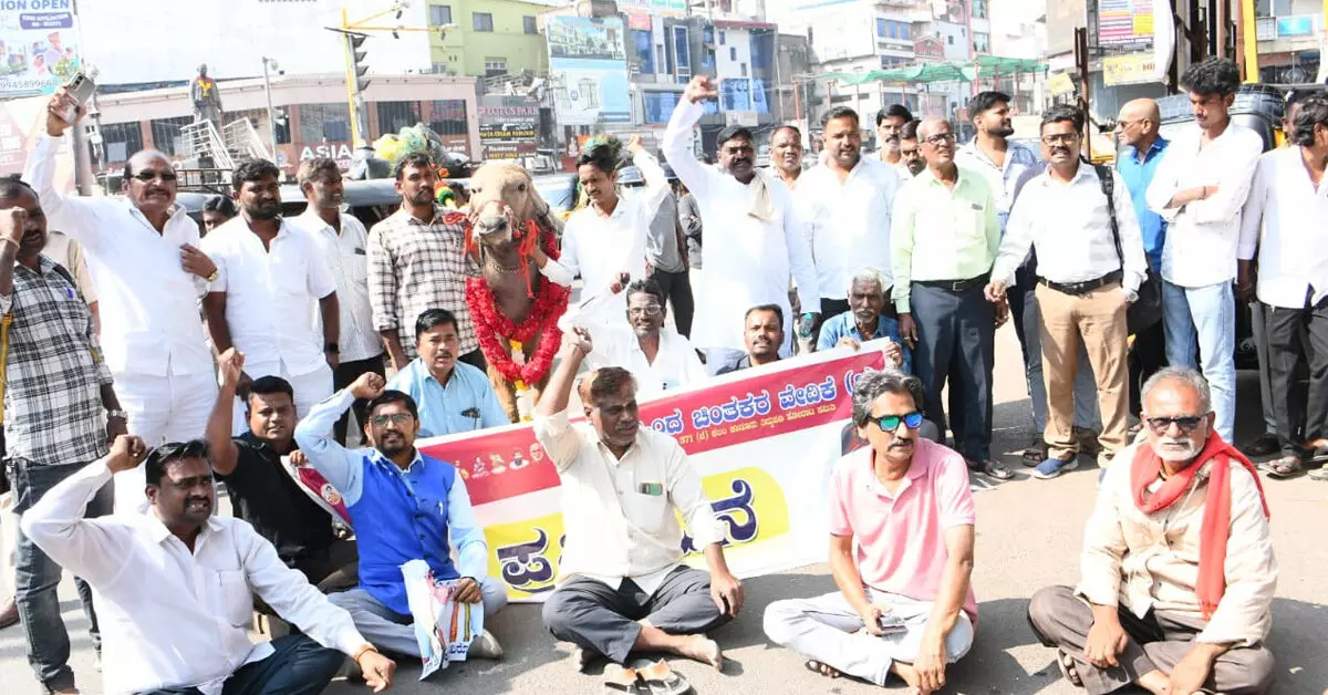 ಕಲಬುರಗಿ : ಕಲ್ಯಾಣ ಕರ್ನಾಟಕ ಪ್ರದೇಶಾಭಿವೃದ್ಧಿ ಮಂಡಳಿಯಲ್ಲಿ (ಕೆಕೆಆರ್ ಡಿಬಿ) ಭ್ರಷ್ಟಾಚಾರ ನಡೆದಿದೆ ಎಂದು ಆರೋಪಿಸಿ, ಅಹಿಂದ ಚಿಂತಕರ ವೇದಿಕೆ ಹಾಗೂ ಕಲ್ಯಾಣ ಕರ್ನಾಟಕ 371 (ಜೆ) ಕಲಂ ಕಾನೂನು ತಿದ್ದುಪಡಿ ಹೋರಾಟ ಸಮಿತಿ ವತಿಯಿಂದ ಮಂಗಳವಾರ, ಕೋಣ ಮೆರವಣಿಗೆ ನಡೆಸಿ, ವಿನೂತನ ಪ್ರತಿಭಟನೆ ನಡೆಸಲಾಯಿತು.