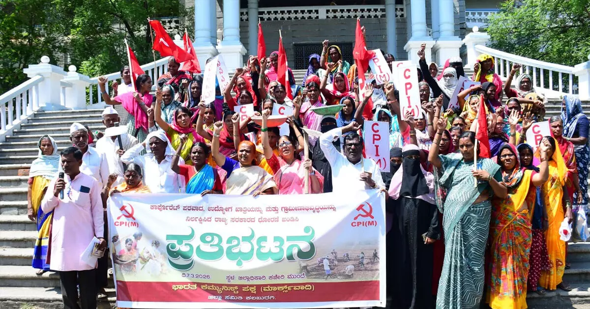 ಕಲಬುರಗಿ: ಮುಖ್ಯಮಂತ್ರಿ ಸಿದ್ದರಾಮಯ್ಯ ಮಂಡಿಸಿದ 2026–27ನೇ ಸಾಲಿನ ರಾಜ್ಯ ಬಜೆಟ್ ಬಂಡವಾಳ ಪರವಾಗಿದ್ದು, ಉದ್ಯೋಗ ಖಾತ್ರಿ ಯೋಜನೆಗೆ ಸಮರ್ಪಕ ಅನುದಾನ ನೀಡದೇ ಅನ್ಯಾಯ ಮಾಡಲಾಗಿದೆ ಎಂದು ಆರೋಪಿಸಿ ಕಮ್ಯುನಿಸ್ಟ್ ಪಾರ್ಟಿ ಆಫ್ ಇಂಡಿಯಾ (ಸಿಪಿಐಎಂ) ಕಾರ್ಯಕರ್ತರು ಶನಿವಾರ ಜಿಲ್ಲಾಧಿಕಾರಿಗಳ ಕಚೇರಿ ಎದುರು ಪ್ರತಿಭಟನೆ ನಡೆಸಿದರು.