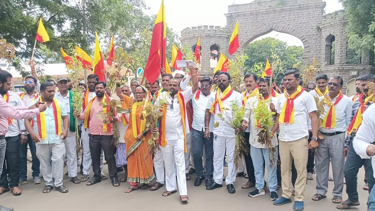 ಕಲಬುರಗಿ: ಮಳೆಯಿಂದ ಬೆಳೆ ನಷ್ಟಕ್ಕೆ ತುತ್ತಾಗಿರುವ ರೈತರಿಗೆ ಶೀಘ್ರವೇ ಪ್ರತಿ ಎಕರೆಗೆ 20,000 ರೂ. ಪರಿಹಾರ ನೀಡಬೇಕೆಂದು ಆಗ್ರಹಿಸಿ, ವೀರ ಕನ್ನಡಿಗರ ಸೇನೆ ವತಿಯಿಂದ ಜಿಲ್ಲಾಧಿಕಾರಿಗಳ ಕಚೇರಿ ಎದುರು ಪ್ರತಿಭಟಿನೆ ನಡೆಸಿದರು.