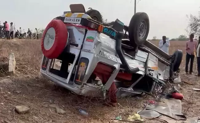 ಕಲಬುರಗಿ | ಟಯರ್ ಬ್ಲಾಸ್ಟ್ ಆಗಿ ಕ್ರಷರ್ ಪಲ್ಟಿ: 10 ಮಂದಿಗೆ ಗಾಯ
