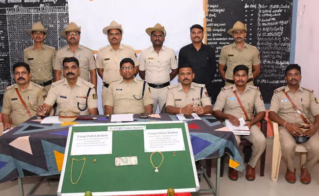 ಕಲಬುರಗಿ: ಕಾಳಗಿ–ಕೋಡ್ಲಿ ಮಧ್ಯದ ಮುಖ್ಯರಸ್ತೆಯಲ್ಲಿ ಪೊಲೀಸರಂತೆ ನಟಿಸಿ ಗಮನ ಬೇರೆಡೆ ಸೆಳೆದು ಯುವಕನಿಂದ ಚಿನ್ನಾಭರಣ ದೋಚಿದ ಪ್ರಕರಣ ಹಾಗೂ ಮಹಿಳೆಗೆ ಫೋನ್ನಲ್ಲಿ ಅಶ್ಲೀಲ ಸಂದೇಶ ಕಳಿಸಿದ್ದೀಯ ಎಂದು ಹೆದರಿಸಿ ಯುವಕನಿಂದ ಚಿನ್ನಾಭರಣ ಕಸಿದ ಪ್ರಕರಣಕ್ಕೆ ಸಂಬಂಧಿಸಿದಂತೆ ಕಾಳಗಿ ಪೊಲೀಸರು ಆರು ಮಂದಿಯನ್ನು ಬಂಧಿಸಿದ್ದಾರೆ.