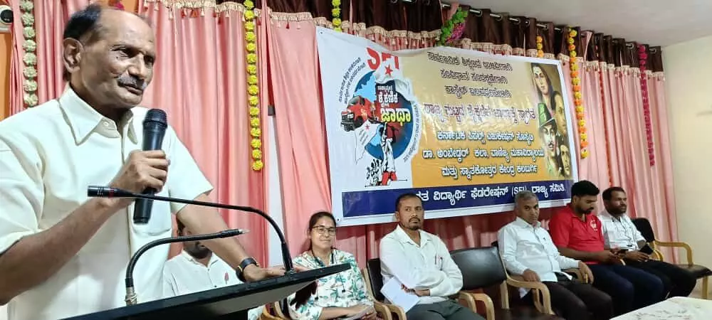 ಇದೇ ವೇಳೆಯಲ್ಲಿ ರಾಜ್ಯ ಉಪಾಧ್ಯಕ್ಷರಾದ ಡಾ.ದೊಡ್ಡ ಬಸವರಾಜ್ ಗುಳೇದಾಳ ಹಾಗೂ ರಾಜ್ಯ ಕಾರ್ಯದರ್ಶಿ ವಿಜಯಕುಮಾರ್ ಟಿ.ಎಸ್ ಮಾತನಾಡಿದರು. ಚಿಂತಕ ಅರುಣ್ ಕುಮಾರ್ ಜೋಳದಕೂಡ್ಲಿಗಿ, ಎಸ್ಎಫ್ಐ ಜಿಲ್ಲಾ ಕಾರ್ಯದರ್ಶಿ ಸುಜಾತಾ, ಜಿಲ್ಲಾ ಅಧ್ಯಕ್ಷರಾದ ಸರ್ವೇಶ್ ಉಪಸ್ಥಿತರಿದ್ದರು.