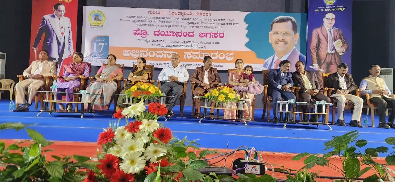ಗುಲ್ಬರ್ಗಾ ವಿಶ್ವವಿದ್ಯಾಲಯ ಆವರಣದ ಡಾ.ಬಿ.ಆರ್.ಅಂಬೇಡ್ಕರ್ ಸಭಾಂಗಣದಲ್ಲಿ ನಡೆದ ಕುಲಪತಿಗಳ ಸೇವಾ ಅವಧಿ ಮುಗಿಸಿದ ನಿಮಿತ್ತ ಇಂದು ನಡೆದ ಪ್ರೊ.ದಯಾನಂದ್ ಅಗಸರ್ ಅವರ ಅಭಿನಂದನಾ ಸಮಾರಂಭದಲ್ಲಿ ಮುಖ್ಯ ಅತಿಥಿಗಳಾಗಿ ಮಾತನಾಡಿದರು.