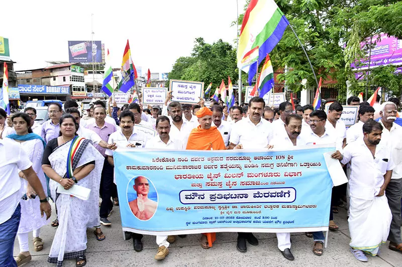 ಮಂಗಳೂರು: ಜೈನ ಮುನಿ ಹತ್ಯೆಯನ್ನು ಖಂಡಿಸಿ, ಸಮಗ್ರ ತನಿಖೆಗೆ ಆಗ್ರಹಿಸಿ ಜೈನ ಸಮಾಜದ ಮೌನ ಮೆರವಣಿಗೆ