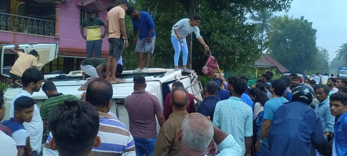 ಚಾರ್ಮಾಡಿ ಘಾಟಿಯ ಒಂಬತ್ತನೇ ತಿರುವಿನ ಬಳಿಕ ರಸ್ತೆಯಲ್ಲಿ ಬೆಂಗಳೂರು ಮೂಲದ ಕಾರು ಪಲ್ಟಿಯಾಗಿ ಕಾರಿನಲ್ಲಿದ್ದ ಪ್ರಯಾಣಿಕರು ಸಣ್ಣ ಪುಟ್ಟ ಗಾಯಗಳೊಂದಿಗೆ ಅಪಾಯದಿಂದ ಪಾರಾದ ಘಟನೆಯು ನಡೆದಿದೆ.