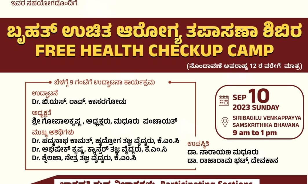 ಹೃದಯ ರೋಗ ವಿಭಾಗ, ಸಾಮಾನ್ಯ ರೋಗ ವಿಭಾಗ, ಎಲುಬು ಮತ್ತು ಕೀಲು ರೋಗ, ಕಿವಿ.ಮೂಗು ,ಗಂಟಲು ವಿಭಾಗ, ಕಣ್ಣಿನ ವಿಭಾಗ, ಚರ್ಮ ರೋಗ ತಪಾಸಣೆ ಕ್ಯಾನ್ಸರ್ ತಪಾಸಣೆ ಮತ್ತು ಮಾಹಿತಿ ನಡೆಯಲಿರುವುದು,ಅಲ್ಲದೆ ಅಗತ್ಯ ಇರುವ ಮೆಡಿಸಿನ್ ಸ್ಥಳದಲ್ಲಿ ಲಭ್ಯ ವಿರುತ್ತದೆ.Kmc ಆರೋಗ್ಯ ಕಾರ್ಡು ಮತ್ತು ಲಾಯಲ್ಟಿ ಕಾರ್ಡ್ ನೋಂದಾವಣೆಯೂ ಈ ಸಂದರ್ಭದಲ್ಲಿ ನಡೆಯಲಿದೆ. ಇದರಿಂದಾಗಿ Rs.35000 ವರೆಗಿನ ಆರೋಗ್ಯ ವಿಮೆ ಸೌಲಭ್ಯ ವು ಫಲಾನುಭವಿಗಳಿಗೆ ದೊರೆಯುತ್ತದೆ. ಟೋಕನ್ ಪಡೆಯಲು ಸೆಪ್ಟೆಂಬರ್ 7,8,9 ರಂದು ಸಂಜೆ 5 ಗಂಟೆ ನಂತರ ಫೋನ್ ಸಂಖ್ಯೆ 9448344380, 8073740237, 8547463158 ಗೆಸಂಪರ್ಕಿಸಬೇಕೆಂದು ಪ್ರತಿಷ್ಠಾನವು ಪ್ರಕಟನೆಯಲ್ಲಿ ತಿಳಿಸಿದೆ.