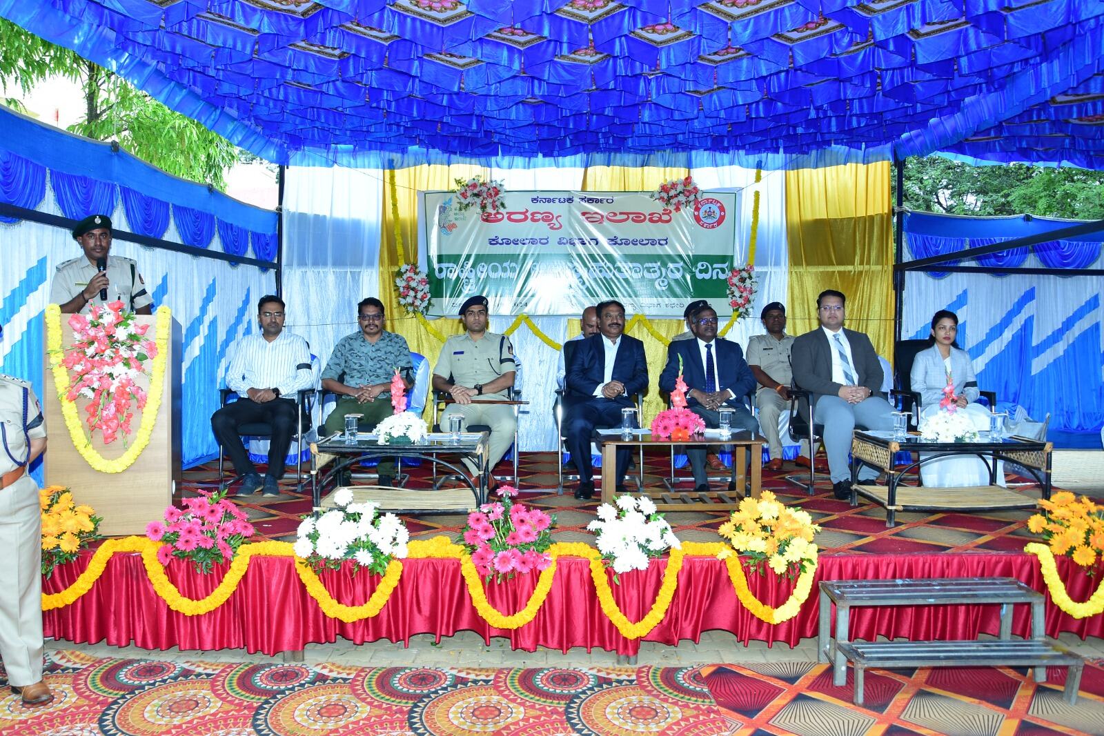 ಜಿಲ್ಲಾ ಪೋಲಿಸ್ ವರಿಷ್ಠಾಧಿಕಾರಿ ಬಿ.ನಿಖಿಲ್ ಮಾತನಾಡಿ, ಅರಣ್ಯ ಸಂರಕ್ಷಣೆಯು ನಮ್ಮೆಲ್ಲರ ಬದ್ದತೆಯನ್ನು ಹೆಚ್ಚಿಸುತ್ತದೆ. ಹುತಾತ್ಮರ ಕುಟುಂಬದೊಂದಿಗೆ ಇಲಾಖೆಗಳು ಸದಾ ಇರುತ್ತದೆ. ಒಗ್ಗಟ್ಟಿನಿಂದ ಕೆಲಸ ಮಾಡಿದಾಗ ಮಾತ್ರವೇ ಯಶಸ್ಸು ಗಳಿಸಲು ಸಾಧ್ಯವಾಗುತ್ತದೆ. ಅದಕ್ಕೆ ಕೋಲಾರದಲ್ಲಿ ಒತ್ತುವರಿ ತೆರೆವು ಉದಾಹರಣೆಯಾಗಿದೆ. ಅರಣ್ಯ ಇಲಾಖೆಯು ಒತ್ತುವರಿ ಭೂಮಿಯನ್ನು ಜಿಲ್ಲಾಡಳಿತಕ್ಕೆ ಕೊಡುಗೆಯಾಗಿ ನೀಡಿದ್ದಾರೆ ಎಂದರು.