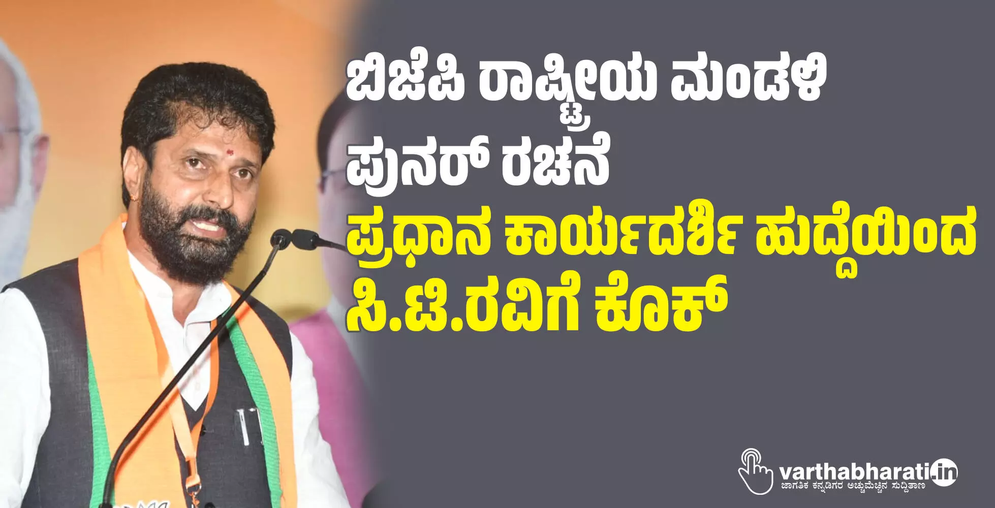 ಬಿಜೆಪಿ ರಾಷ್ಟ್ರೀಯ ಮಂಡಳಿ ಪುನರ್ ರಚನೆ: ಪ್ರಧಾನ ಕಾರ್ಯದರ್ಶಿ ಹುದ್ದೆಯಿಂದ ಸಿ.ಟಿ.ರವಿಗೆ ಕೊಕ್
